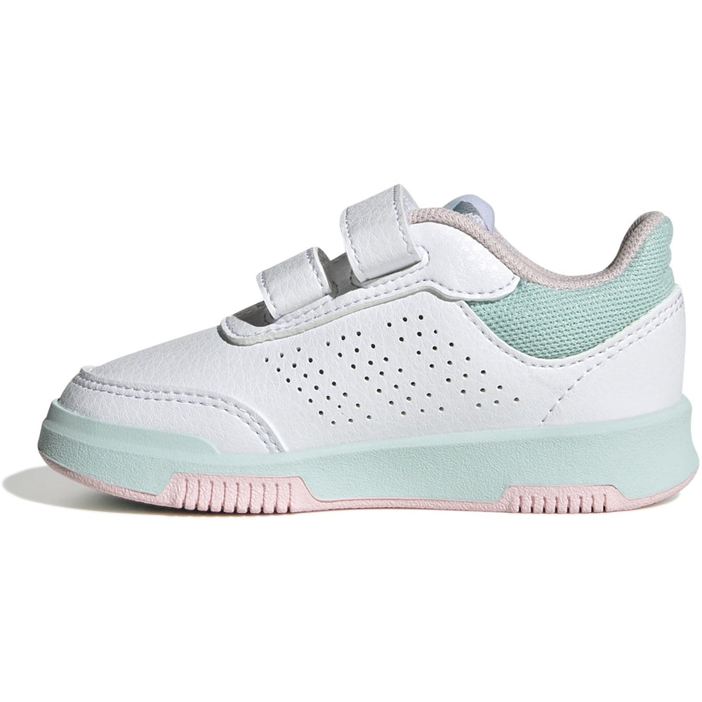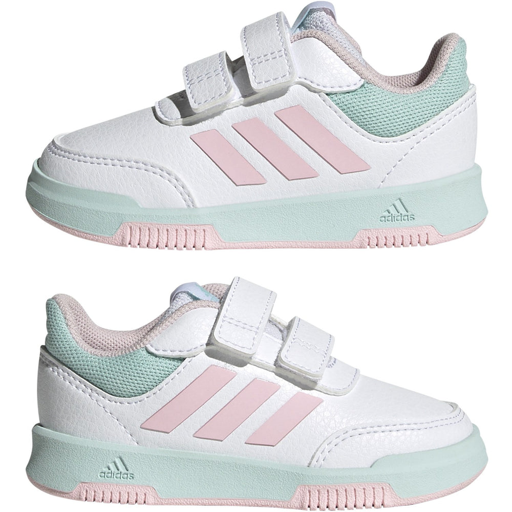 Introduce your little one to the joy of exploration with the adidas Originals Tensaur Sport 2.0 Cf I Sneakers, immaculately crafted in shades of Ftwr White, Clear Pink, and Semi Flash Aqua. Designed with growing feet in mind, these sneakers boast a comfortable fit with easy hook-and-loop straps for quick adjustments. The durable rubber outsole is perfect for indoor play, leaving no marks on your floors while ensuring stability and support. Each pair is conscientiously made with at least 50% recycled materials as part of adidas' commitment to reducing plastic waste. Delight in how these stylish, eco-friendly sneakers keep your child’s feet secure and cozy during every little expedition.