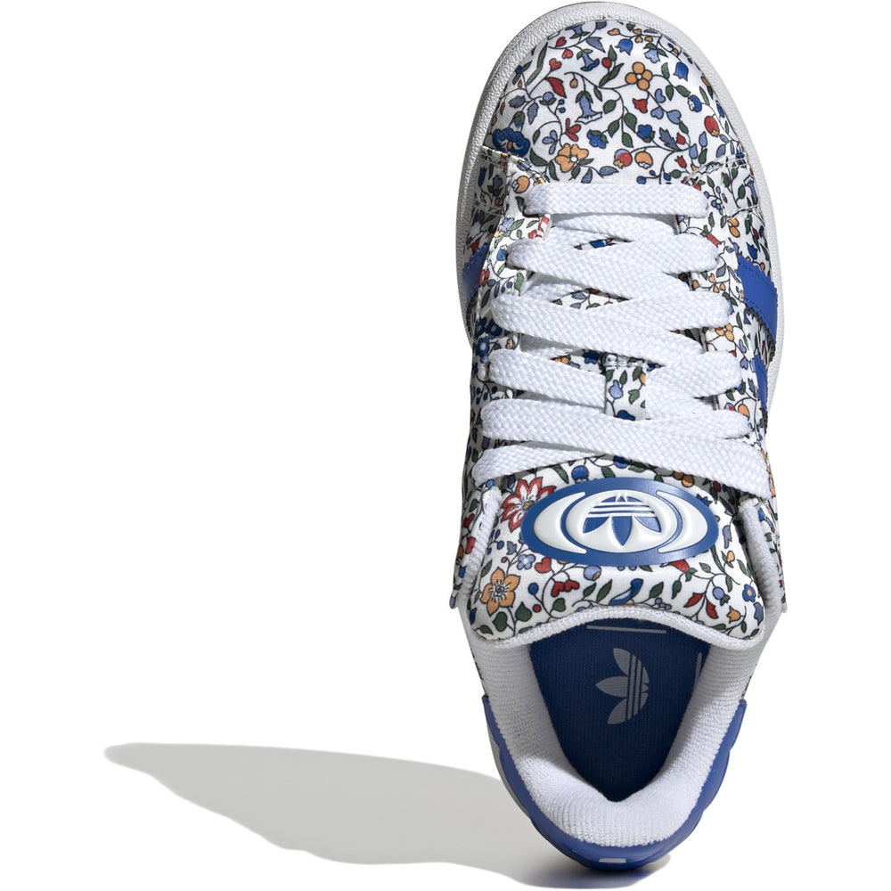 Step into style with the adidas Originals Campus 00S J Sneakers, delightfully designed in collaboration with Liberty London. These iconic sneakers, a staple from the '80s hip-hop era, blend a smooth suede upper with Liberty's signature floral prints, crafting a statement of individual expression. Tailored specifically for juniors, these sneakers offer a flexible fit with a textile and synthetic upper, paired with a durable rubber outsole for reliable traction. Embrace the blend of function and fashion, perfect for elevating any young trendsetter's footwear collection. Closure: Laces Fit: Regular Materials: Upper: Synthetic, Textile, Lining: Textile, Sole: Rubber Extra: Campus-specific Y2K branding on tongue, Trefoil branding on heel tab, Campus wording on lateral side, serrated three stripes. Liberty London and Adidas Trefoil branding on the sockliner.