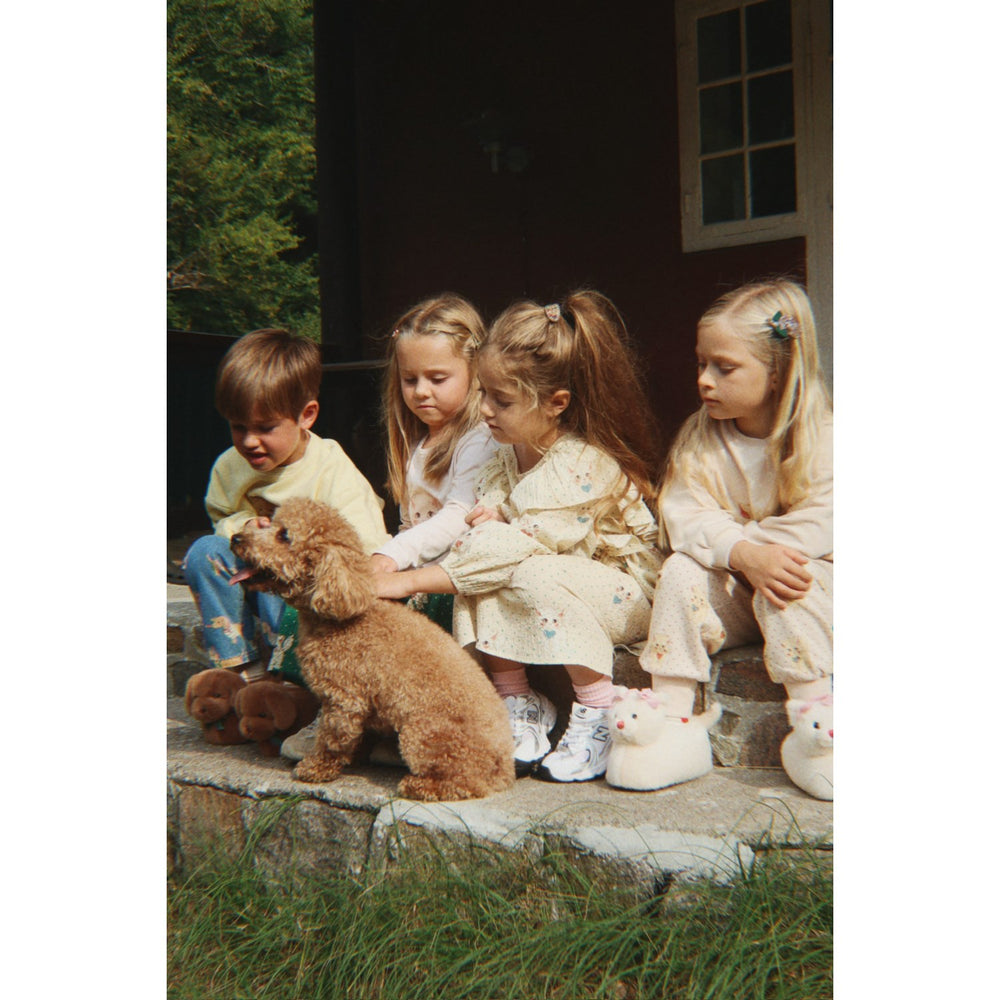 Introducing the Konges Sløjd Off White Kitty Footies, perfect for keeping your child's feet cozy and cheerful! Designed with a charming kitty motif in a soft off-white color, these indoor shoes are made from high-quality materials ensuring durability and comfort. Ideal for toddlers, these slippers offer an excellent fit and easy wearability, while the playful design adds a touch of fun to their daily routine. Machine washable for easy care, they're not only functional but also delightfully adorable, making them a great addition to your little one’s wardrobe. Materials: 100% Polyester