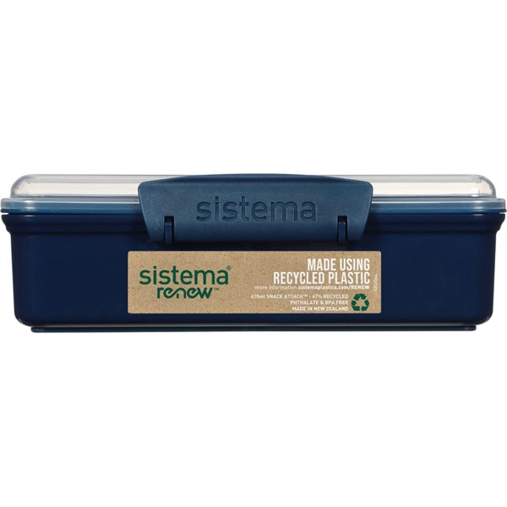 "Elevate your meal experience with the Sistema Renew Snack Attack Lunch Box in 410ml Blue!
