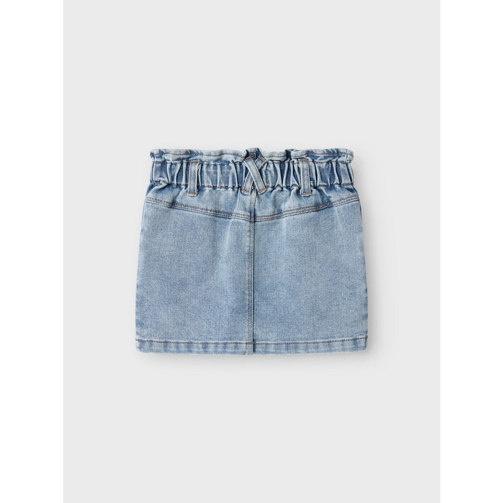 Introducing the Lil'Atelier Medium Blue Denim Darlee Denim Skirt, perfect for children who love to play and explore. Crafted from durable denim in a vibrant medium blue tone, this skirt features fun front pockets and a press stud fastening for easy wear. Its adjustable and elasticated waist ensures a comfortable fit, while the stylish heavy abrasions give it a unique, trendy look. Ideal for both festive occasions and daily adventures, this skirt promises both style and functionality, making it a must-have in your child's wardrobe.