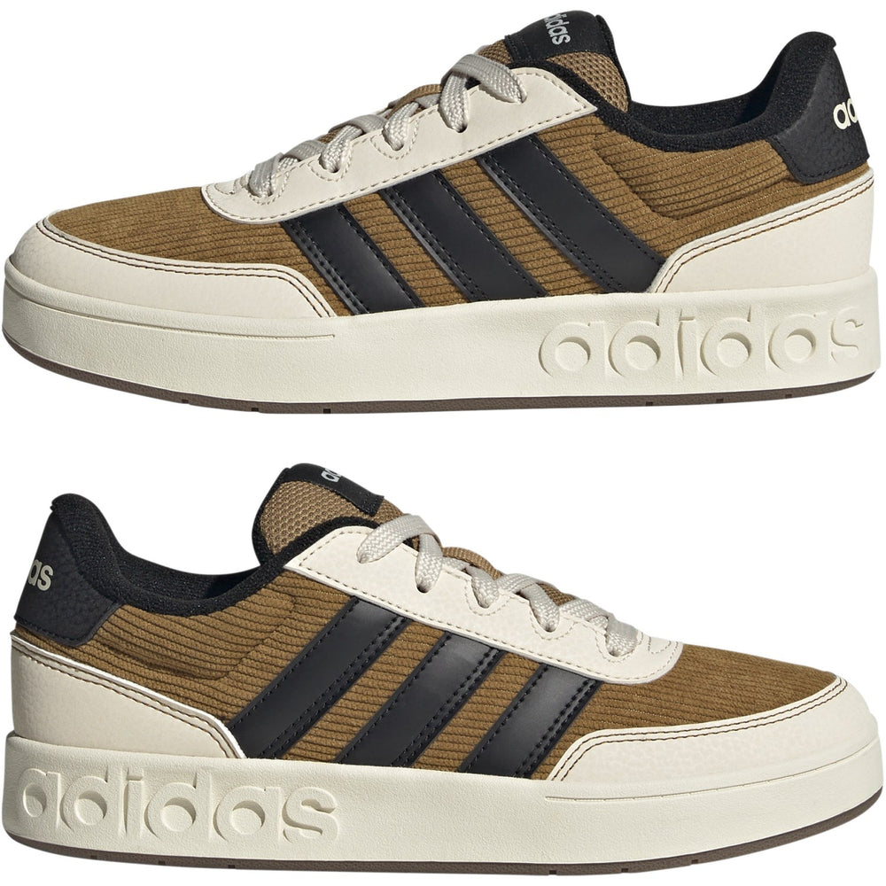 Introducing the adidas Originals Breakbase J Sneakers, perfect for active kids! Crafted with a synthetic upper and a soft textile lining, these sneakers ensure comfortable wear all day long. Featuring a rubber outsole for superior traction, they're ideal for playground adventures and school walks alike. With a sleek design in Bronze Strata/Core Black/Wonder White, these shoes blend classic style with modern flair, ensuring your child looks as sharp as they feel. Easy to care for, they promise lasting durability and endless fun for any activity.