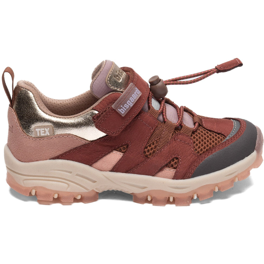 Discover the charm and functionality of the Bisgaard Burgundy Pilou Tex Boots, perfect for children who thrive in the great outdoors. Expertly crafted from 100% LWG-certified leather, these boots emphasize sustainability with eco-friendly tanning processes. The unique combination of durable nubuck and breathable textile provides an exclusive look while ensuring lasting wear. Envelop little feet in comfort with the breathable textile lining and a removable, ergonomically shaped insole that supports natural foot movement. The light, flexible, and non-slip outsole ensures safe and easy mobility on any terrain. Designed for ease, these boots feature a mix of elastic and Velcro closures for a snug fit and straightforward wearability, complemented by a low shaft for enhanced movement and a reinforced rubber toe for extra protection. Perfect for every young explorer's next adventure!