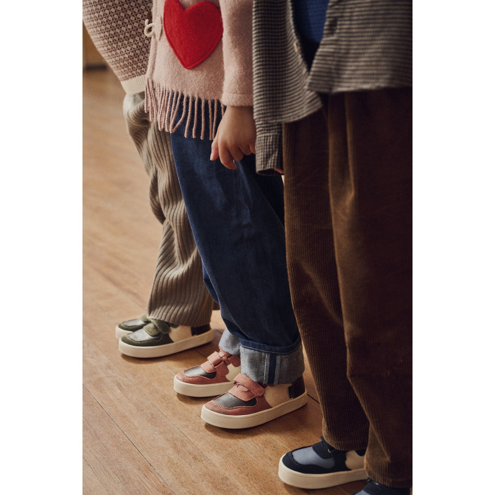 The Corey sneakers boast a roomy interior with a soft, breathable mesh lining guaranteeing comfort and freshness throughout the day. Fitted with a practical Velcro fastener, these sneakers are easy for kids to slip on and off independently, enhancing their confidence and self-reliance. The thoughtful design includes a flat, flexible sole without a heel drop, promoting natural foot placement and balance – essential for growing children.