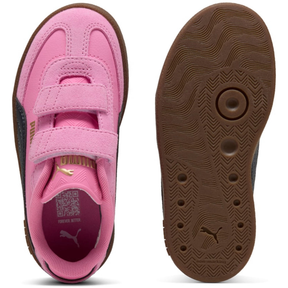 Introducing the PUMA Pink Puma Club II Era V PS Sneakers - a revamped classic blending football heritage with modern street style. Crafted from a deluxe mix of suede and leather, these sneakers boast a vibrant pink hue accented with playful patterns, ensuring your child stands out in style. The shoes are specially designed to fit comfortably with a SoftFoam+ sockliner for top-notch cushioning, making every step a breeze. These durable sneakers are perfect for all-day wear, from school yards to weekend outings, providing both elegance and ease of maintenance. With PUMA's trusted brand quality and heritage, these sneakers are a must-have addition to your child's wardrobe.