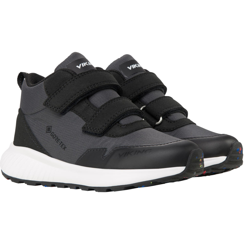 Discover the perfect adventure companion for your little explorer with the VIKING Black Aery Track Mid GTX 2V Sneakers. These lightweight sneakers are specifically designed to keep active children’s feet supported, especially with the extra ankle reinforcement they provide. Crafted from recycled textiles that feature a GORE-TEX laminate, they ensure dry and comfortable wear all day long. The GORE-TEX membrane meets the OEKO-TEX 100 standard and is Bluesign® certified, emphasizing sustainability and safety.