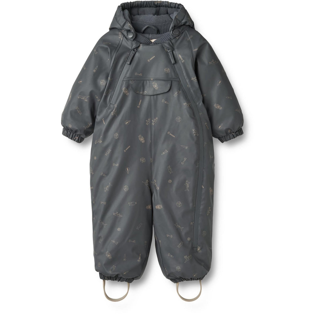 Discover the perfect outdoor companion for your little one with the Wheat Ink Pocket Treasures Wintersuit Evig. Crafted from 100% recycled polyester with a breathable polyurethane coating, this suit merges the best features of both a rain and snow suit, ensuring your child stays dry and warm. The charming hand-drawn all-over print adds a touch of whimsy, while the technical design provides a water resistance of 9,000 mm and a breathability rate of 600 g/m2/24h.