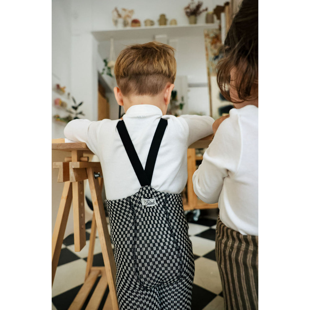 Introducing the delightful Silly Silas Special Edition footless tights, perfect for your little explorer! Crafted from soft, breathable cotton, these tights boast a chic black and white check pattern that adds a touch of whimsy to any outfit. The unique braces ensure a snug fit while allowing complete freedom of movement. Ideal for both playtime and outings, they offer comfort and style in one go, and are easy to care for, ensuring they remain a staple in your child's wardrobe. Materials: 100% Organic Cotton Certifications: OEKO-TEX® Standard 100 at the Class 1, GOTS Organic