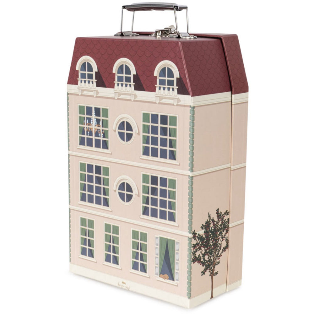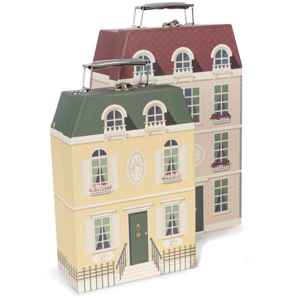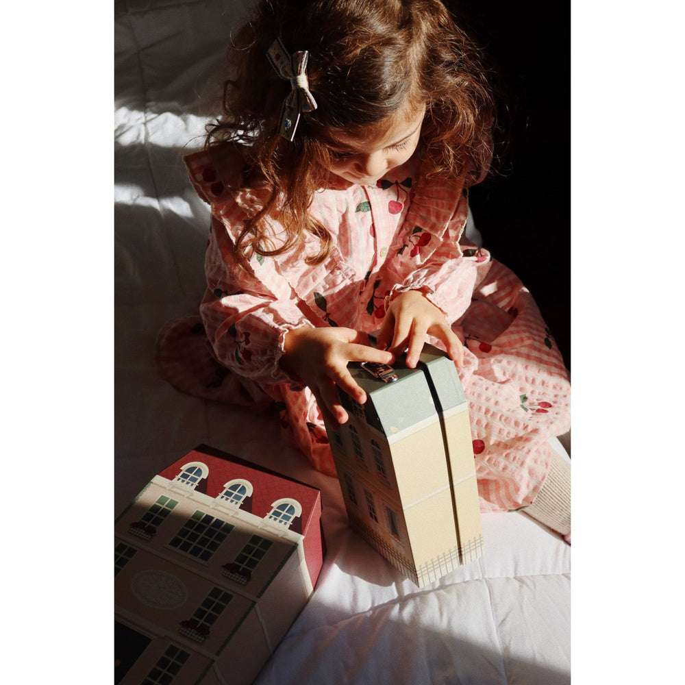 Discover the whimsical charm of the Konges Sløjd Multi Boutique Hotel Play Suitcases, perfect for igniting imaginative play and keeping your child's room tidy and stylish. This delightful set includes two suitcases, each designed to resemble a charming boutique hotel. The smaller suitcase neatly tucks into the larger one, making storage simple and space-efficient.