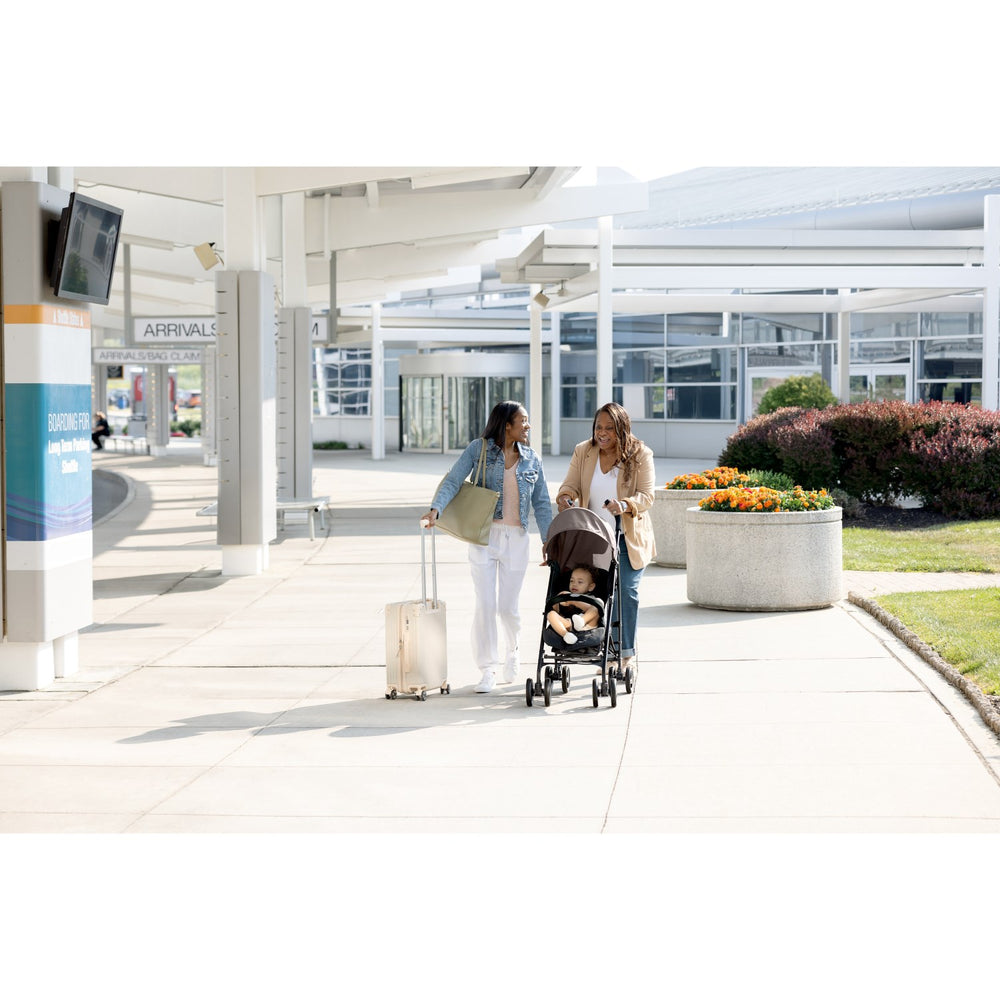 Discover the Graco Black Grey Travelite Stroller, an ultralight stroller designed for urban living and travel. Weighing only 7kg and featuring an easy compact fold with an automatic locking mechanism, it guarantees mobility without sacrificing convenience. The stroller's comfort is enhanced by a multi-position recline and adjustable calf support, ensuring a cozy ride from birth up to approximately 3 years (0-15kg). It boasts easy maneuverability thanks to its front swivel-lock wheels with suspension and offers ample storage with its large, easy-to-access basket. For safety, it includes an adjustable 3- or 5-point harness and a large canopy to shield your child from harsh elements. Plus, an easy-release bumper bar makes transitions swift and simple. Optimal for active parents, this stroller combines essential safety features, comprehensive certifications, and thought-out design for a stress-free experience. Perfect for everyday errands or travel adventures, the Graco Travelite ensures your little one is entertained, stimulated, and secure wherever you go.