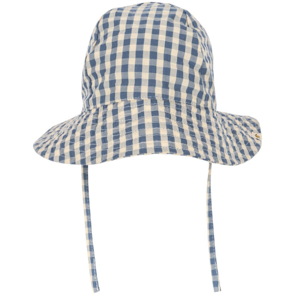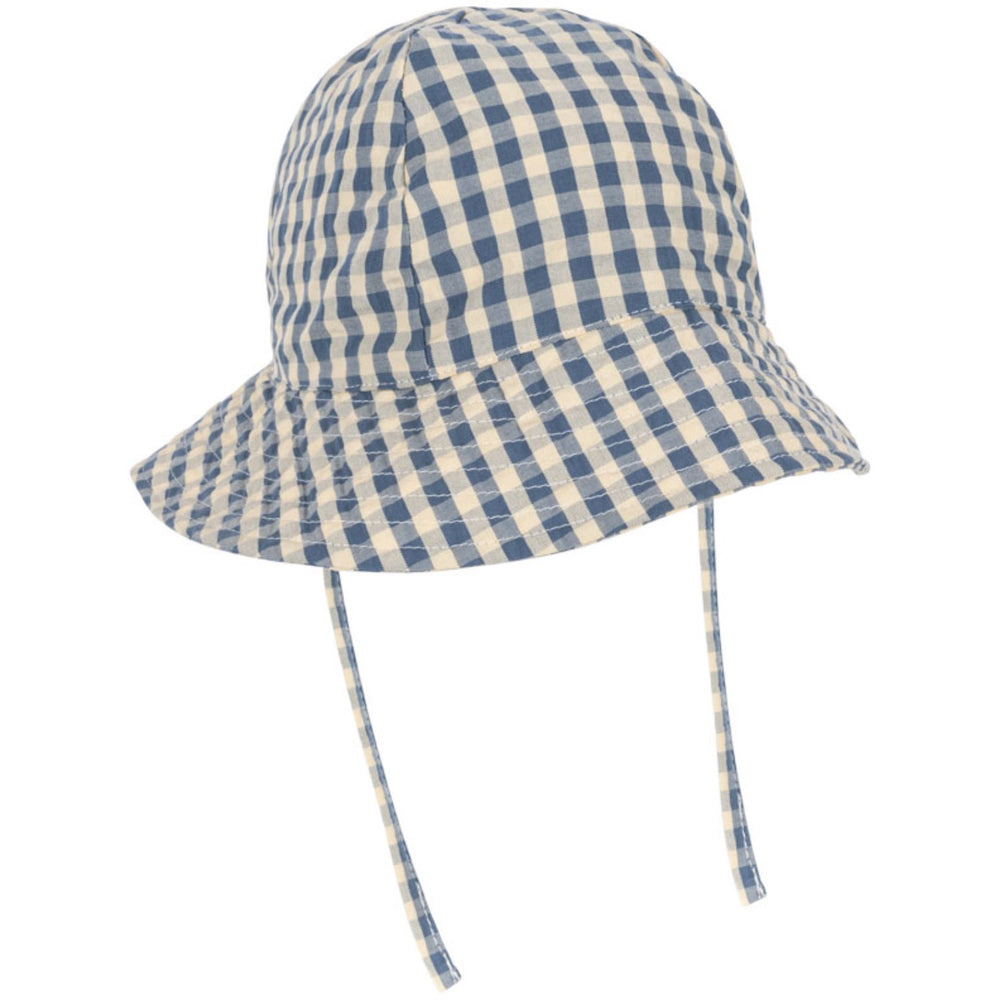 Keep your little one protected and stylish with the Konges Sløjd Captains Blue Check Kim Solhat. Crafted from 100% organic cotton, this soft sun hat features a charming blue check pattern and a practical wide brim. Securely fitting with ties that fasten under the chin, it's GOTS certified for environmental and health safety. Perfect for sunny days outdoors, its comfortable design ensures your child stays cool and protected from the sun.