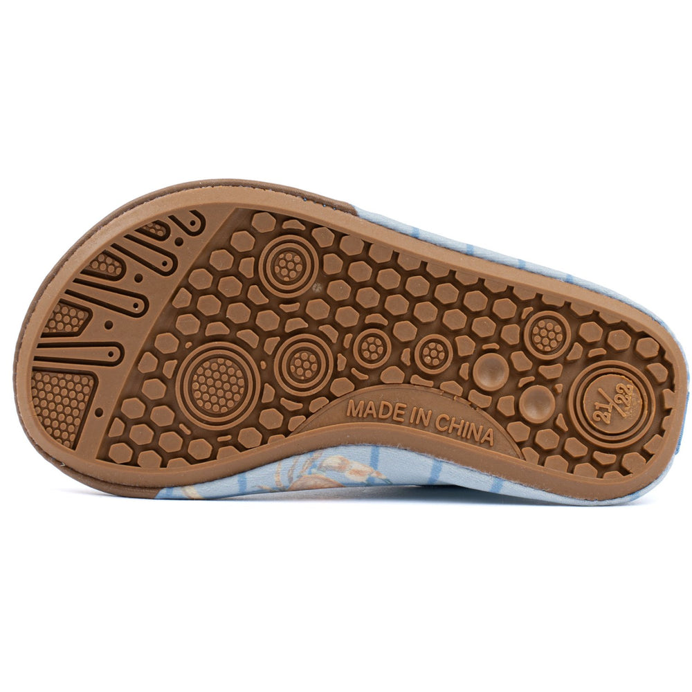 Introduce your child to stylish and practical footwear with Mikk-Line Faded Denim AOP Swimshoe. Crafted with 83% recycled polyester, these shoes are not only environmentally conscious but also extremely durable. The eye-catching all-over print ensures your child stands out while matching perfectly with Mikk-Line's swimwear collection. These swim shoes boast a non-slip rubber sole and additional rubber print at the toes for maximum protection against harsh surfaces like hot sand or sharp rocks. The design includes a handy heel band, making the shoes easy to slip on and off, ideal for little adventurers. For fit and comfort, they come in a range of sizes with space to accommodate growing feet. Dive into comfort, safety, and style with these must-have swim shoes—the ultimate choice for any water-related activity!
