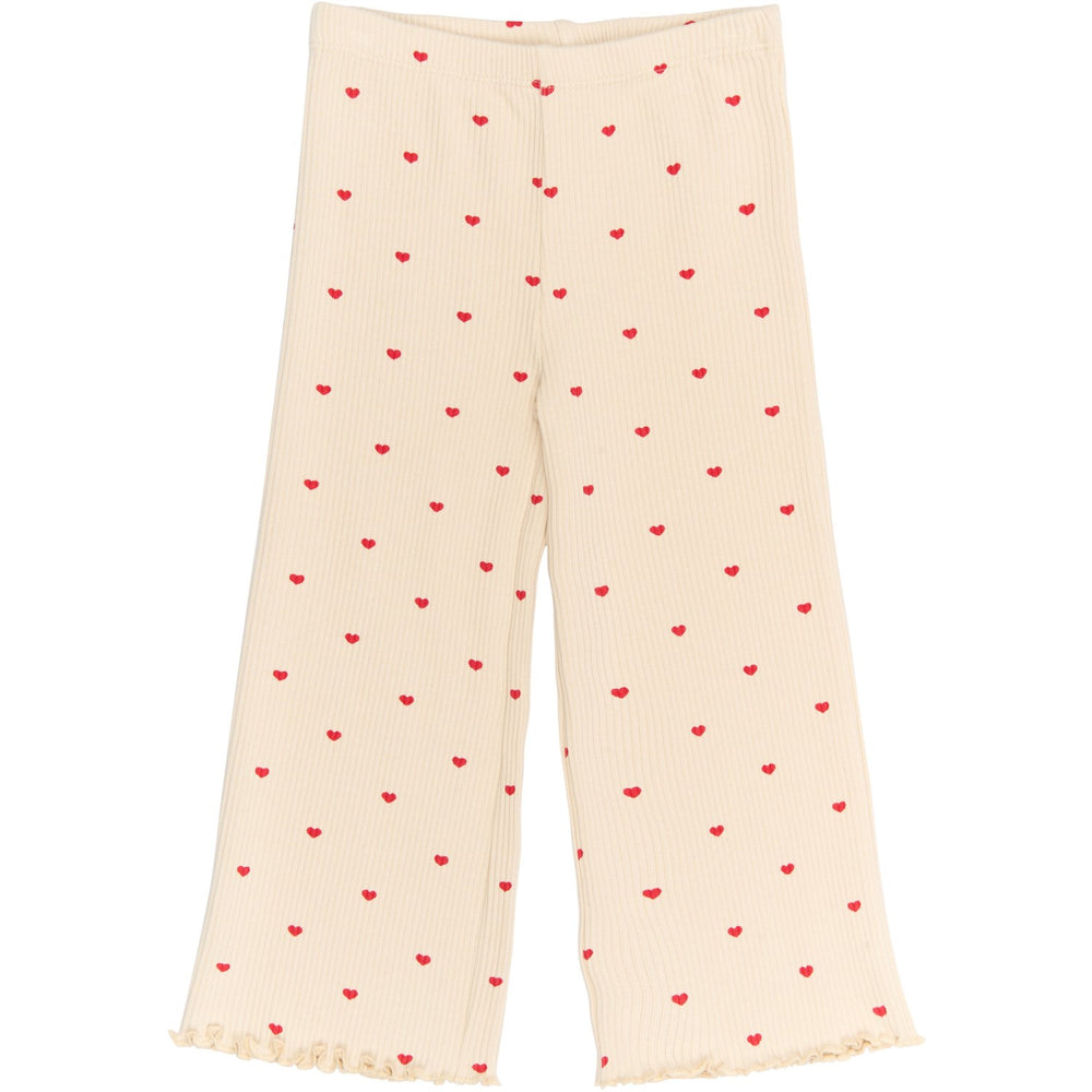 Dress your little one in comfort and style with the THE NEW Siblings Gardenia AOP Rhea Wide Rib Pants. Crafted from GOTS-certified organic, soft, and stretchy fabric, these wide-leg pants are perfect for both active play and relaxation. Adorable all-over heart prints and playful lettuce-edge hems add a dash of fun, while the elastic waistband ensures a snug, flexible fit. Perfectly pairing with the TNSTRhea Rib Tee, these pants make getting dressed a breeze and keep your child looking cute and feeling comfy all day long.