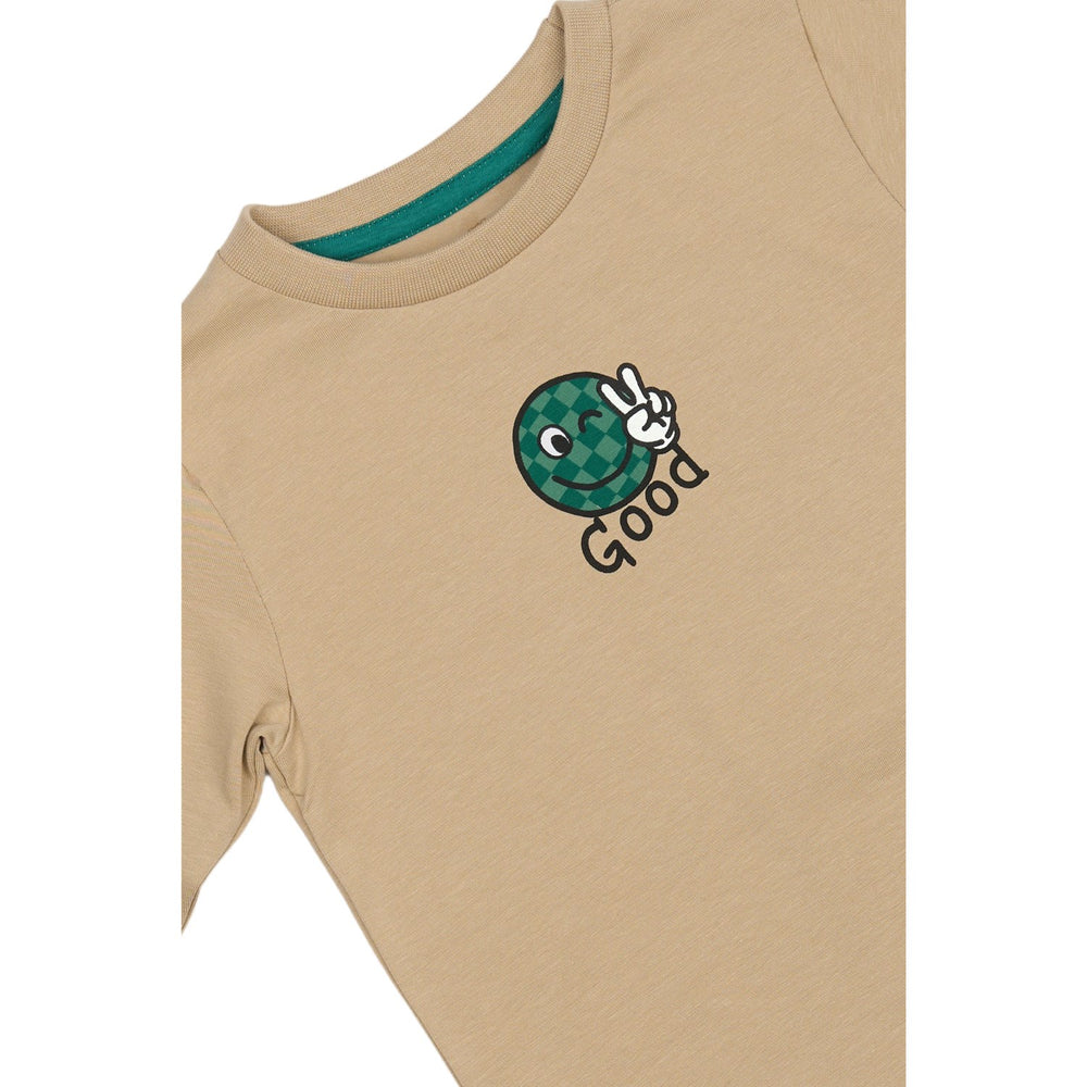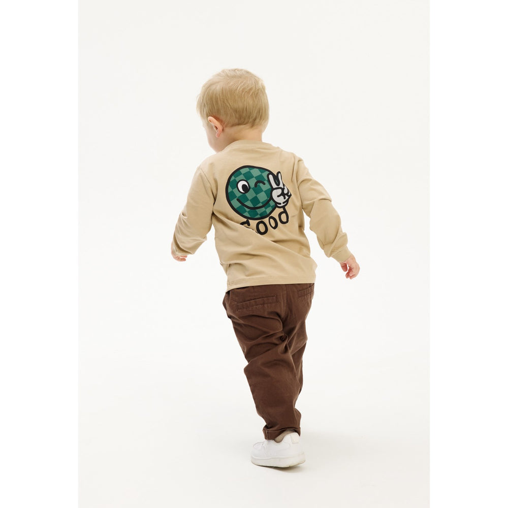 Dress your little ones in the cozy comfort of THE NEW Siblings Humus TNSTPatton L_S Tee, featuring a charming sparkle smiley print. Crafted from GOTS Organic certified material, this sweater guarantees both style and sustainability. The playful prints on the front and back add a touch of fun, while the fine ribbed edges ensure a snug fit. Perfect for everyday adventures and weekend relaxation, this regular-fit, long-sleeved tee is a must-have for your child's wardrobe. Enjoy easy maintenance with its durable fabric, ideal for the playful and active lifestyle of kids.