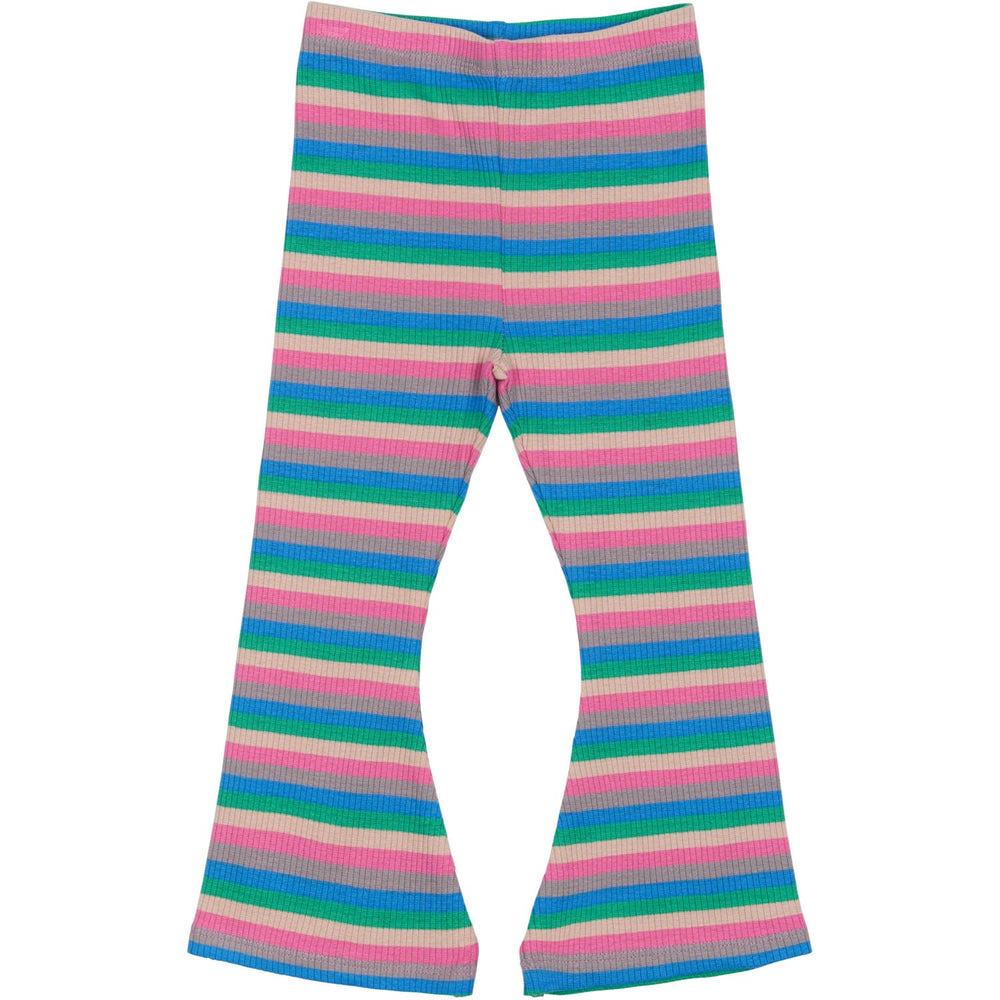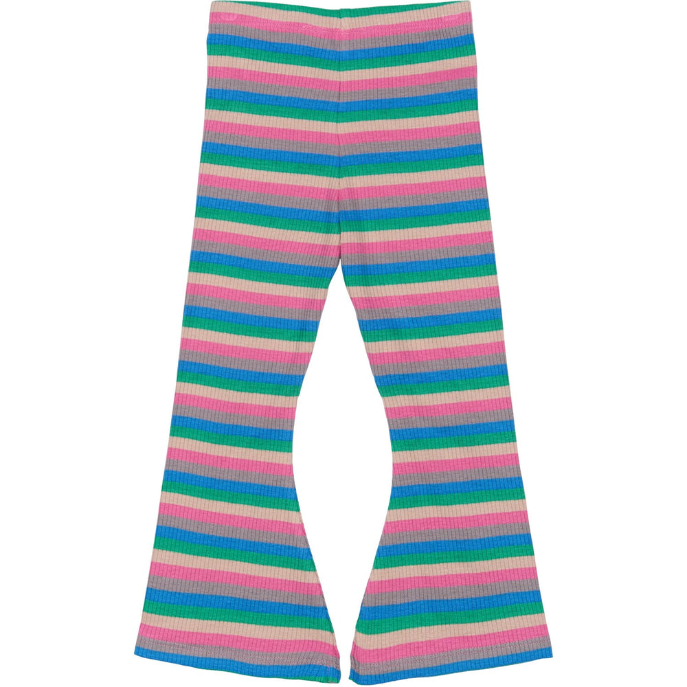 Introducing THE NEW Siblings Multi Striped Polly Flared Rib Pants, perfect for your child's stylish yet playful wardrobe. Crafted from GOTS Organic certified rib-knit material, these pants ensure comfort with their wide elastic waistband and loose, flared leg design. The multi-color stripes add a vibrant touch, making them versatile for any occasion. Whether paired with the matching TNST Polly Rib Tee for a coordinated look or mixed with other casual pieces, these pants offer both fun and functionality. Care is easy, ensuring these pants remain a favorite without extra hassle. Ideal for everything from festive gatherings to everyday adventures, these pants adapt beautifully to both energetic play and relaxed days.