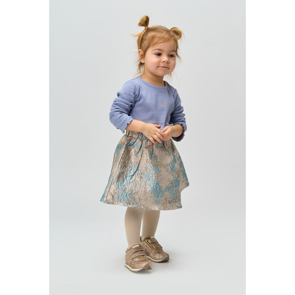 Introducing the delightful Tempest Rianna L_S Rib Tee from THE NEW Siblings, perfect for enriching your little one's closet! Crafted from GOTS-certified organic material, this long-sleeved T-shirt ensures comfort for everyday wear and showcases lovely wavy edges at the neckline, cuffs, and hem. Adorned with a small heart print on the chest, it carries a subtle yet adorable design. The slim fit enhances its style, making it versatile enough to be paired with any bottom or layered for cooler days. Available in two charming colors, this tee not only promises a snug feel but also maintains ease of care, ideal for busy parents. Pair it with the coordinating TNSTRianna Rib Leggings for a complete, stylish look that your child will love!