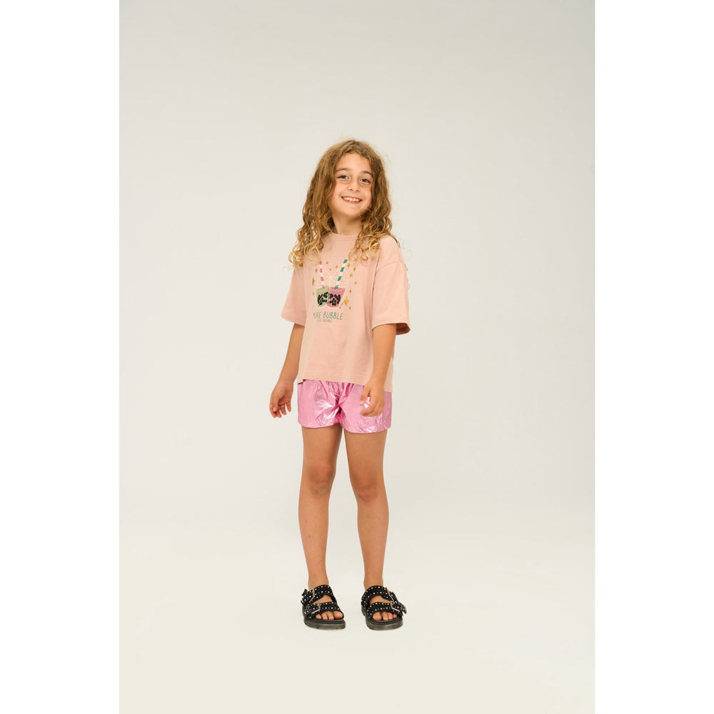 Brighten up your child's wardrobe with the New Adobe Rose Olga Oversize T-Shirt. Beautifully crafted in soft, durable fabric, this t-shirt combines style with comfort. Its unique oversized design ensures a relaxed fit, perfect for active kids, and features a charming, playful pattern that captures the joy of childhood. The delightful rose color adds a splash of cheerfulness, enhancing the vibrant style of the t-shirt.