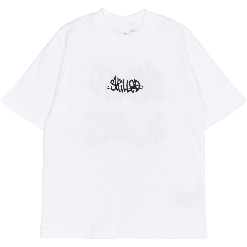 Elevate your little one's street style with the New Bright White Ross Oversize S_S Tee from THE NEW. This comfy oversized T-shirt boasts a minimalist "SKILLED" embroidery on the front and a vibrant graphic of two blue dice along with a large "SKILLED" print on the back. Crafted from soft, GOTS-certified organic cotton, it promises exceptional comfort and a trendy, lax fit. Ideal for both playful days and relaxed moments, this T-shirt combines effortless style with easy care, making it a wonderful addition to any youngster's wardrobe. Perfect for pairing with jeans or shorts for a casual yet fashionable look.