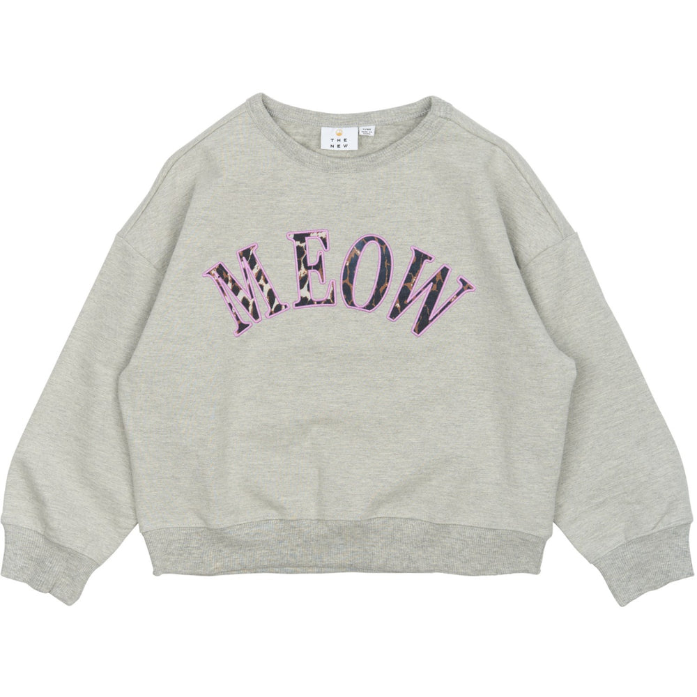 Discover the ultimate in cozy chic with THE NEW Light Grey Melange TNPolina OS Sweatshirt. Designed for comfort and style, this oversized, long-sleeved sweatshirt features a playful "Meow" chest print in vibrant colors, contrasting beautifully against its soft, light grey backdrop. The versatile design complements both jeans and sweatpants, making it perfect for lounging at home or for casual outings. Easy to care for and durable, it promises to be a favorite in your child’s wardrobe for its ease of wear and endless pairing possibilities.