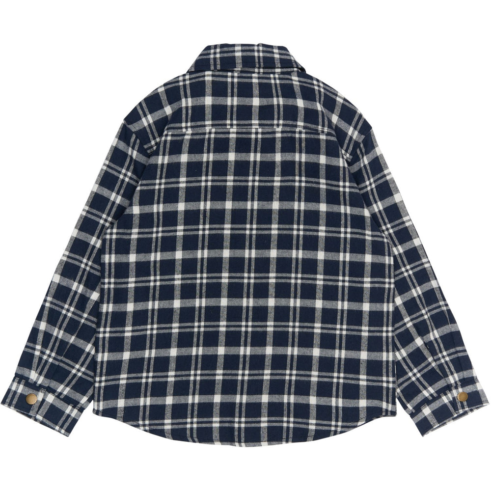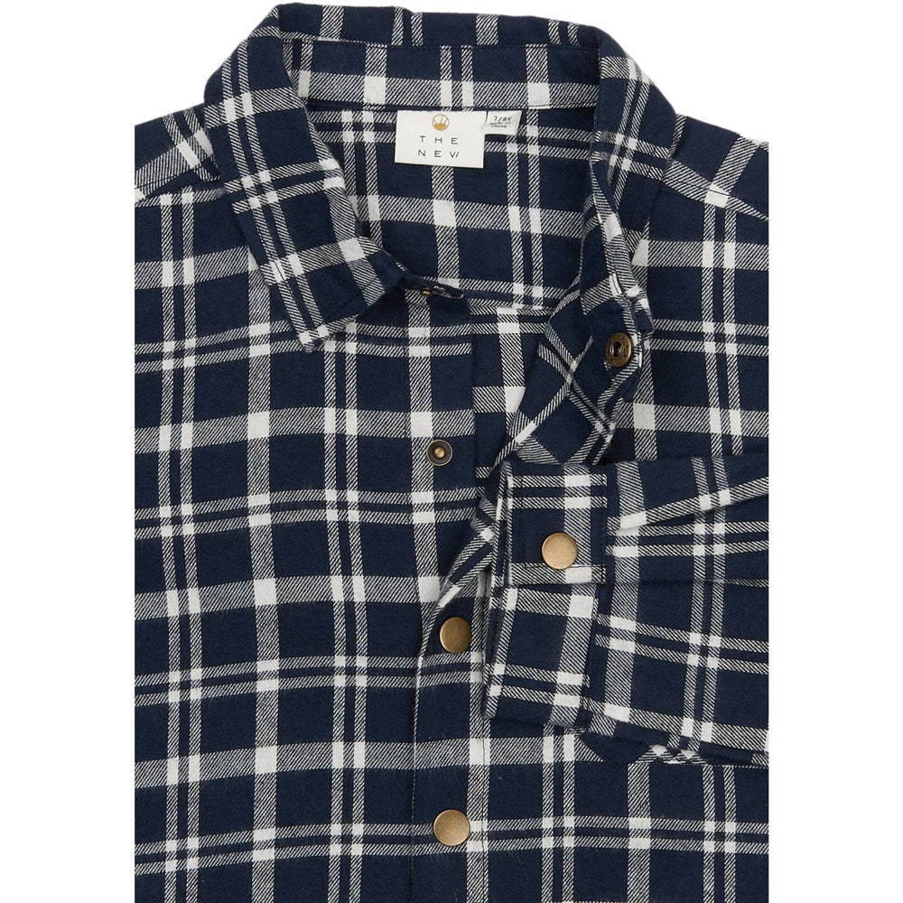 Introducing the cozy New Navy Blazer Check Ronan Oversize L_S Flannel Shirt from THE NEW – your child's next favorite piece of clothing! Crafted in classic checkered flannel, this shirt offers a timeless yet trendy appeal with its oversized fit and eye-catching chest pocket featuring a uniquely rotated pattern. Its full button closure ensures easy dressing, while the soft, breathable material guarantees all-day comfort. Whether styled solo or layered as a lightweight jacket, this flannel shirt is versatile, making it perfect for school days or weekend outings. Ideal for those who value both style and comfort in their children's wardrobe.