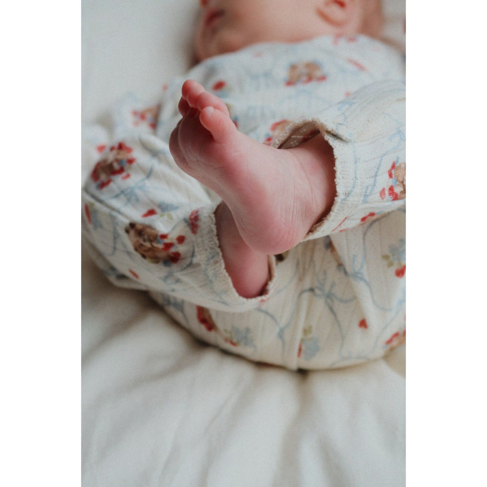 Delight in the cozy embrace of our Konges Sløjd Puppy Minnie Onesie, perfect for your little one's wardrobe. Made from GOTS-certified organic cotton, this essential ensures ultimate comfort day and night. The charming pointelle pattern adds a touch of elegance, making it a stylish choice for any infant. It's designed for ease, featuring a snug fit that moves with your child. Durable and easy to care for, this onesie is an ideal blend of function and style, upholding the renowned quality of Konges Sløjd. Celebrate your child's comfort and cuteness with every wear!