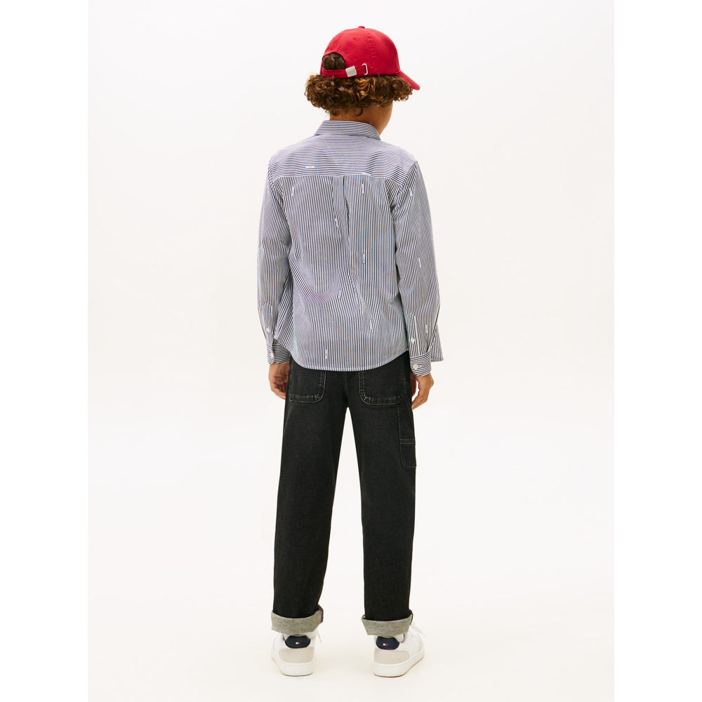 Discover the charm of the Tommy Hilfiger Dark Night Navy White Stripe Aop Jersey Shirt, perfect for your little one's wardrobe. Crafted from soft jersey material, this shirt boasts a stylish striped pattern in a dark navy and white palette. The comfortable fit ensures ease of movement, while its timeless design makes it suitable for various occasions. Easy to care for, this shirt remains vibrant wear after wear, embodying both fashion and functionality. Materials: Transitional Cotton / In-Conversion (100%)