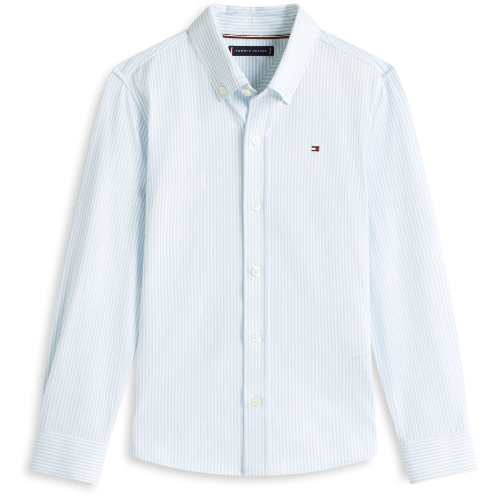 Dress your little one in the Tommy Hilfiger White Breezy Blue Stripe Aop Jersey Shirt, perfect for any occasion. Crafted from soft, breathable jersey material, this shirt features a charming blue and white stripe design with a comfortable fit. Easy to care for and durable, it ensures your child stays stylish without sacrificing comfort. Ideal for both casual and more formal events, it's a versatile addition to any child's wardrobe. Materials: Transitional Cotton / In-Conversion (100%)