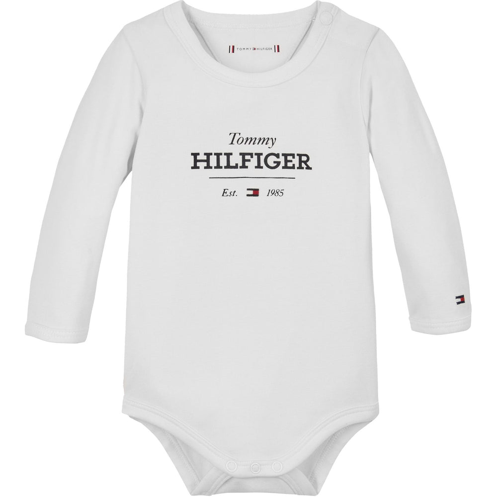 Discover the charm of the Tommy Hilfiger White Monotype Logo Long Sleeve Bodysuit, perfect for your little one! Crafted from soft, breathable material, this bodysuit features an eye-catching white with a bold monotype logo. Expertly designed for both style and comfort, it offers a snug fit while ensuring easy movement. Its durable fabric makes for simple care, ideal for everyday wear. A stylish choice that blends iconic branding with cozy wearability!