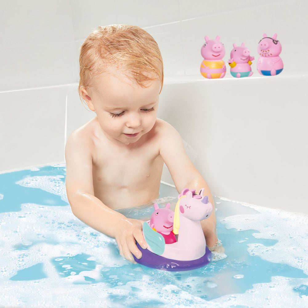 - Place Peppa Pig in the unicorn, fill the unicorn with water and give Peppa Pig a refreshing shower from the bottom of the unicorn