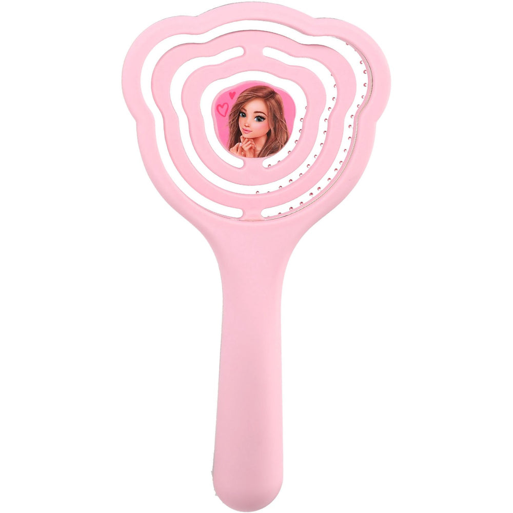 Discover the charming TOPModel Beauty And Me Hair Brush, perfect for your little one's grooming needs. Its unique teddy-shaped, rose-colored brush head is designed to flex inwards, minimizing tugs and discomfort during hair brushing. Enhanced with adorable details like a golden teddy head and a matching golden frame, this brush combines functionality with style, making hair care enjoyable and gentle for children.