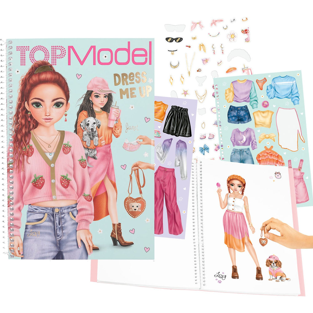 Discover the joy of fashion with the TOPModel Dress Me Up Large Stickers book! Perfect for children who love style and creativity, this spiral-bound sticker book includes 7 unique sticker sheets—5 paper and 2 foil—featuring trendy clothes and accessories. Kids can style 20 different model figures along with their cute furry friends. It's not just fun but also boosts fine motor skills and creativity. The book is easy to carry, store, and because it's all stickers, there's no mess involved! Ideal for young fashionistas aged 5 years and up.