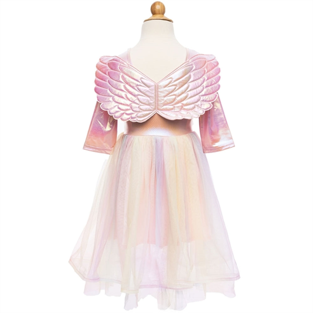 Introducing the Great Pretenders Alicorn Dress, Wings, and Headband - perfect for your little one's imaginative play! Designed with safety in mind, this costume is easy to wear and suitable for children ages 3 and up. It's not only magical in appearance but also educational, fostering creative thinking and roleplay. Compact and simple to maintain, it ensures endless fun and effortless storage. Encourage your child's fantasy adventures and watch them soar with joy!