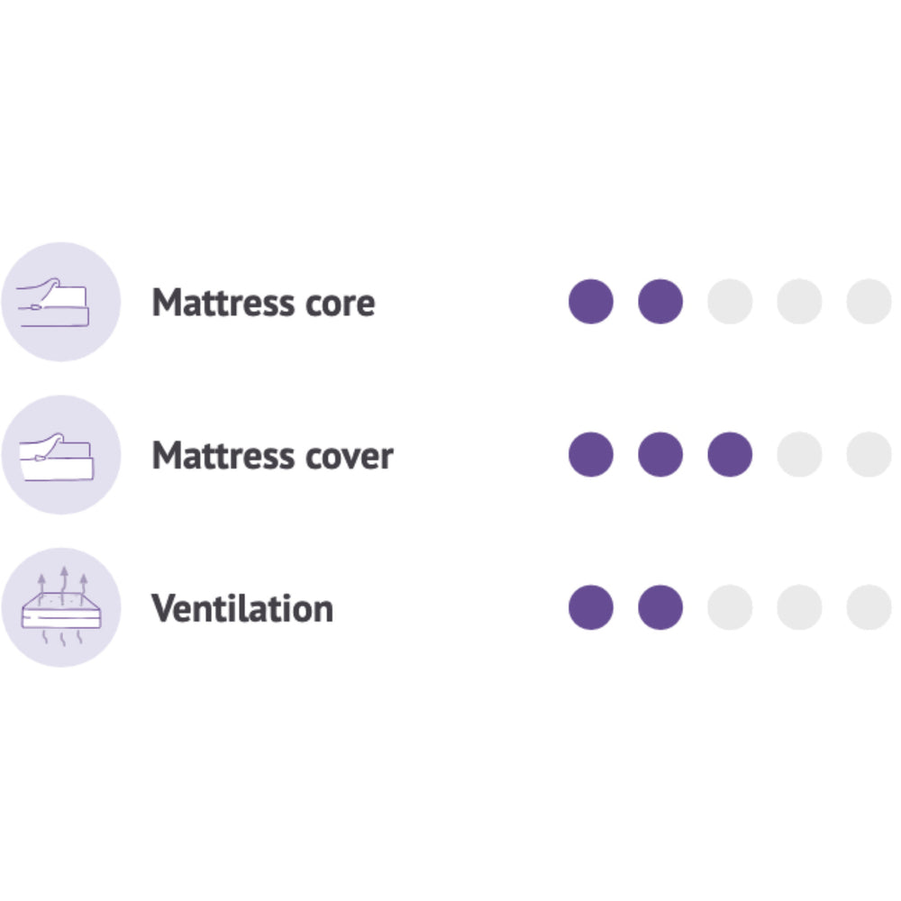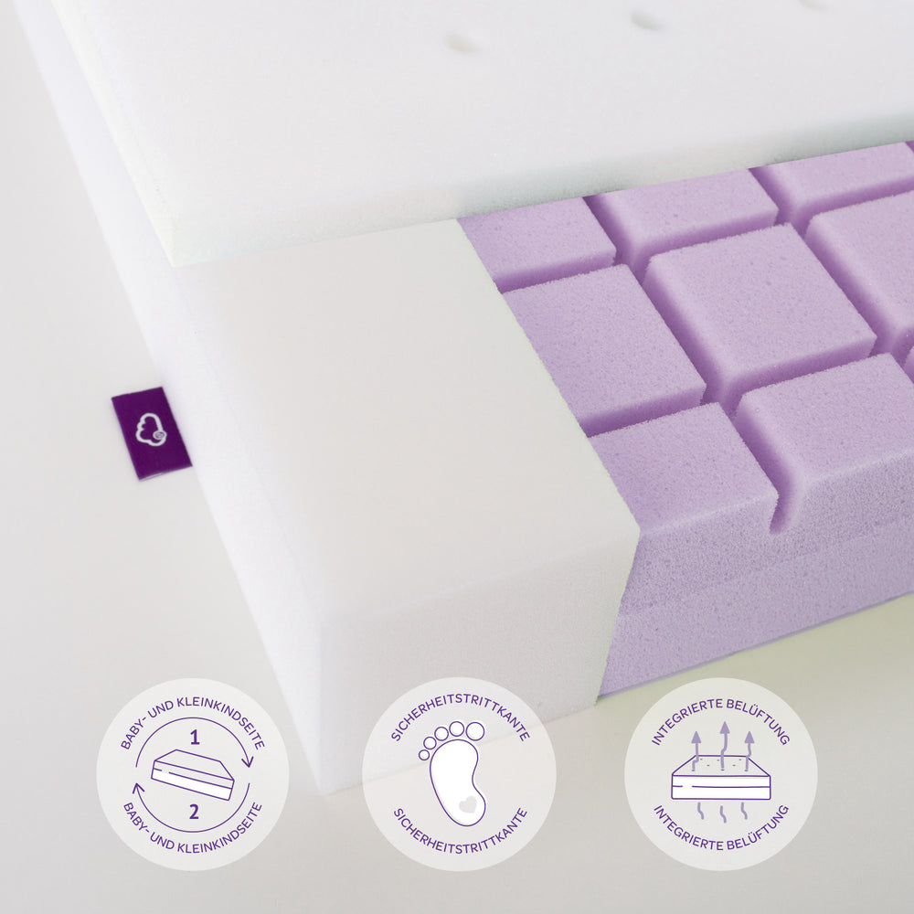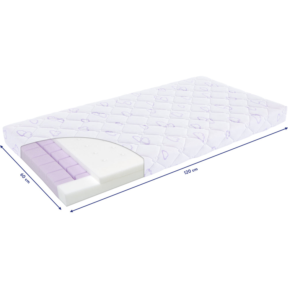 Discover the Träumeland White Mattress Air Flow Premium, designed meticulously for your baby's comfort and safety. This innovative mattress features reinforced edges and 3D-comfort-pads, ensuring optimal spine support while the cover comes with built-in wetness protection, maintaining a dry and cozy sleeping environment. Ideal for fostering a restful night's sleep for your little one! Filling: cold foam Materials: 54 % polyester and 46 % cotton Measurements: 60 x 120 x 11 cm Washing instructions: 60 degrees, suitable for gentle machine drying Certifications: OEKO-TEX STANDARD 100, 47693 OETI