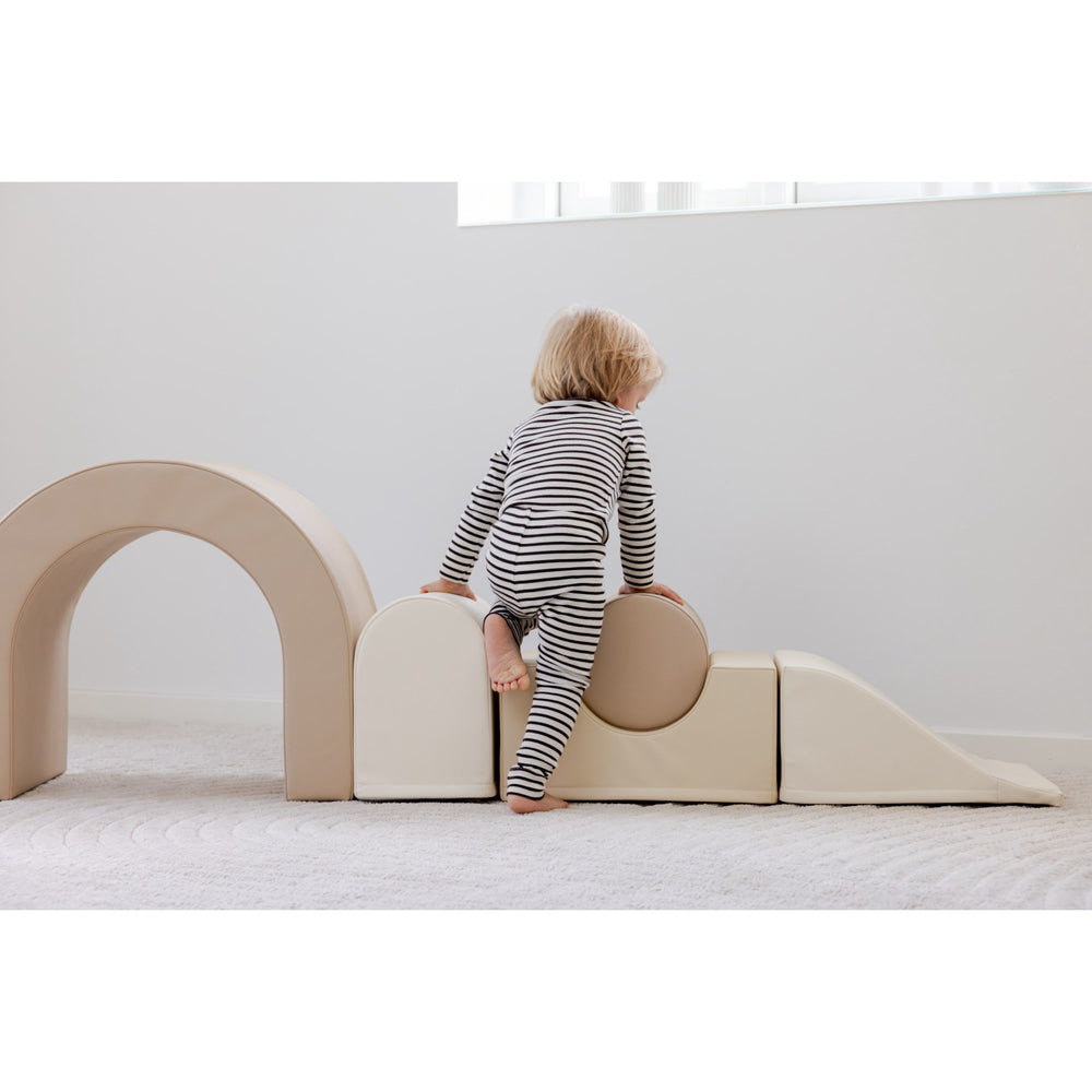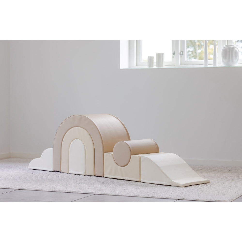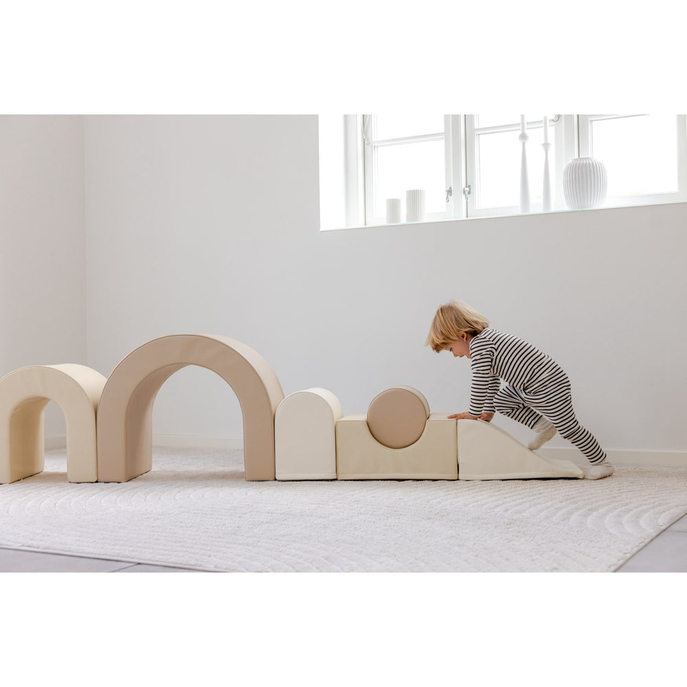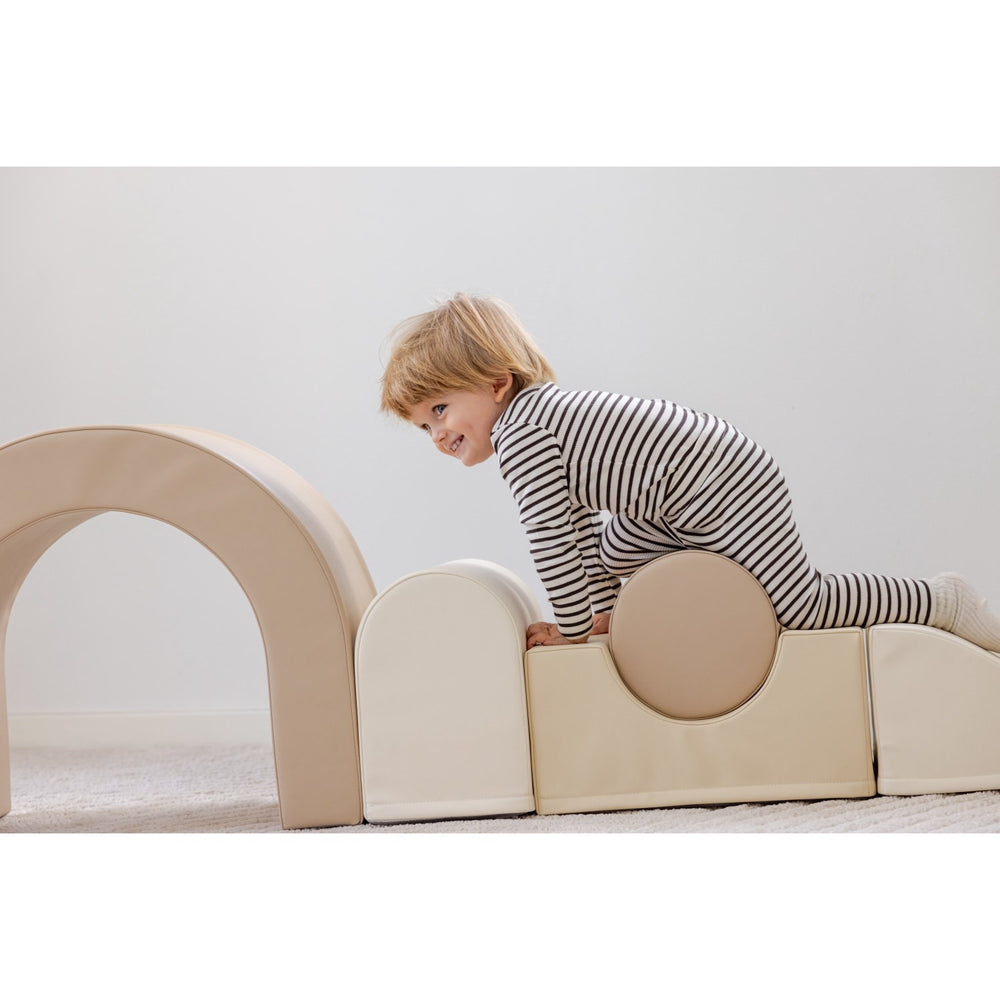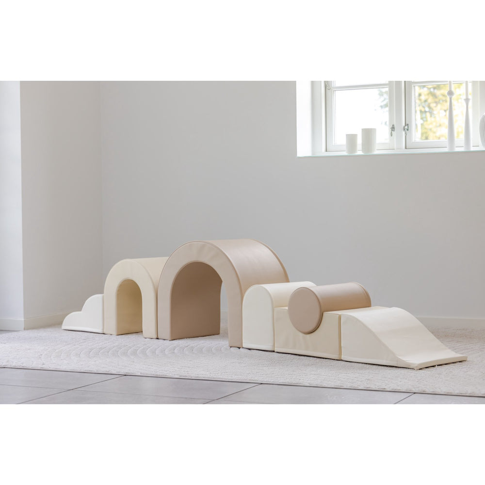 By integrating elements of Montessori pedagogy, the set promotes not only physical development but also enhances body awareness and cognitive skills. Its attractive, Nordic-inspired colors and textures make it a delightful addition to any play area, ensuring it's not only functional but also visually appealing.