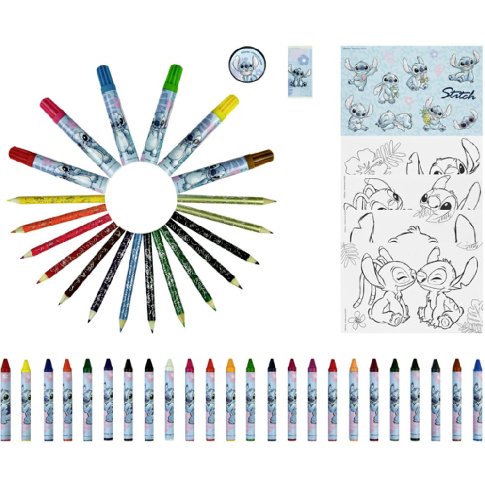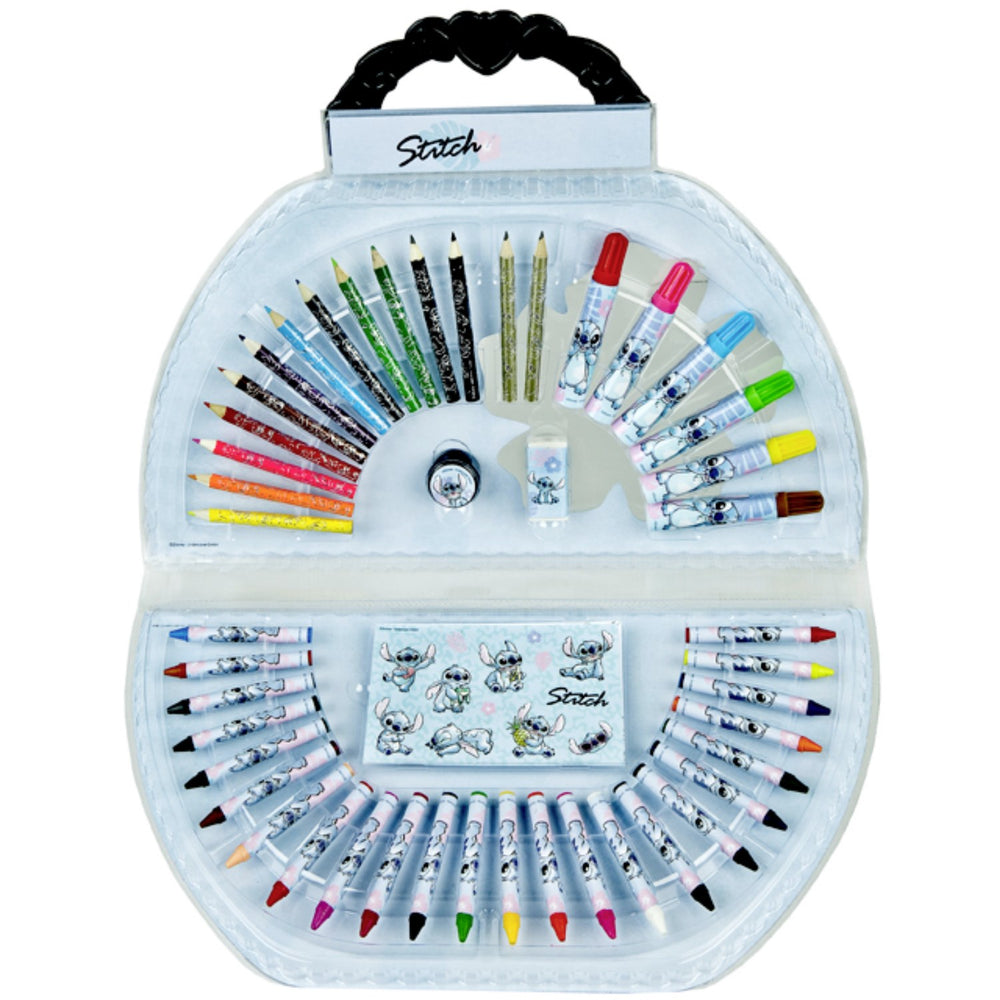 Unleash your child's imagination with the Undercover Disney Stitch 51-piece paint bag! This colorful set includes 12 mini crayons, 6 markers, 24 chalks, an eraser, 2 mini pencils, nibs, 4 posters, and a sticker sheet, designed to inspire creativity and learning. Perfectly sized for little hands and easy to store, it ensures hours of safe, educational, and engaging fun for children eager to express themselves artistically. Ideal for crafting and learning on the go!