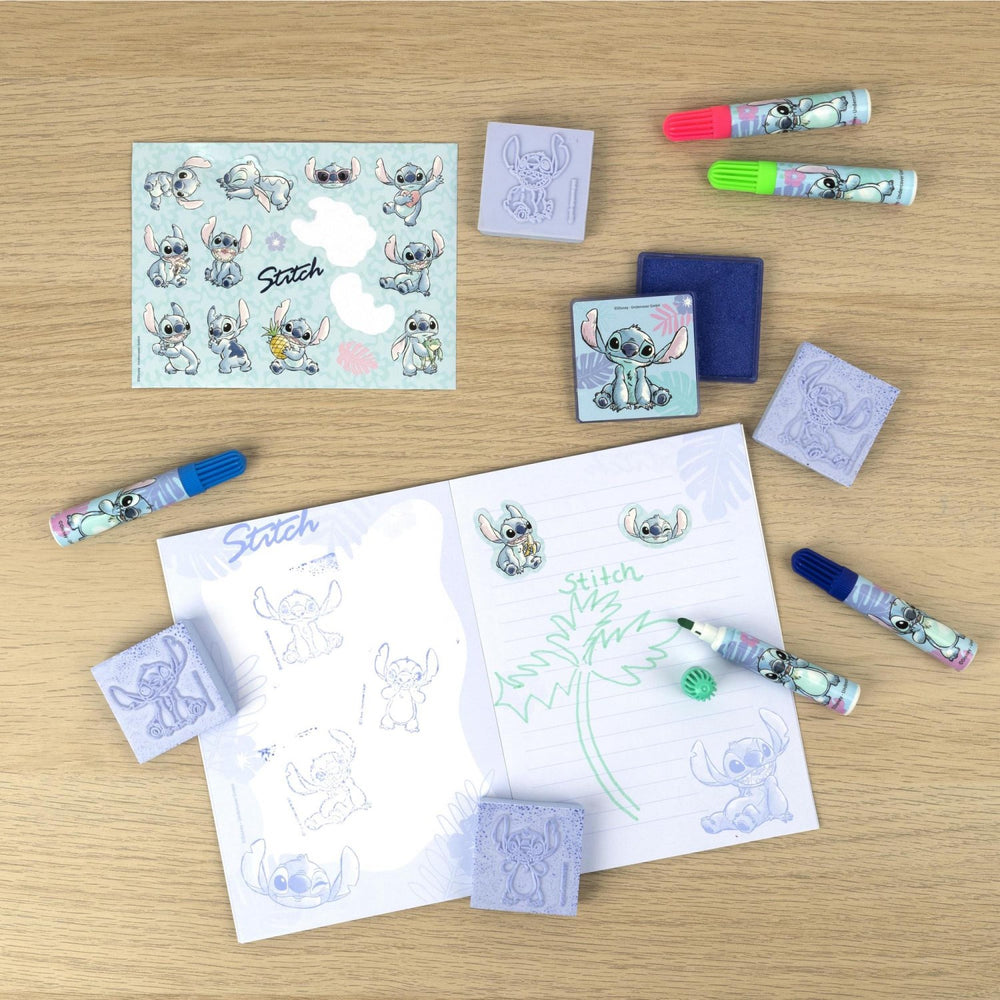 Unleash creativity with the Undercover Lilo & Stitch stamp set! This kit includes four engaging stamps, a stamp pad, vibrant stickers, a fun coloring book, and five brilliant crayons. Designed with safety and ease of use in mind, it's perfect for young artists aged 3 and up. Not only does it encourage creative expression and learning, but it also features easy storage and maintenance, ideal for busy families on the go. Let your child's imagination soar with this delightful and educational set!