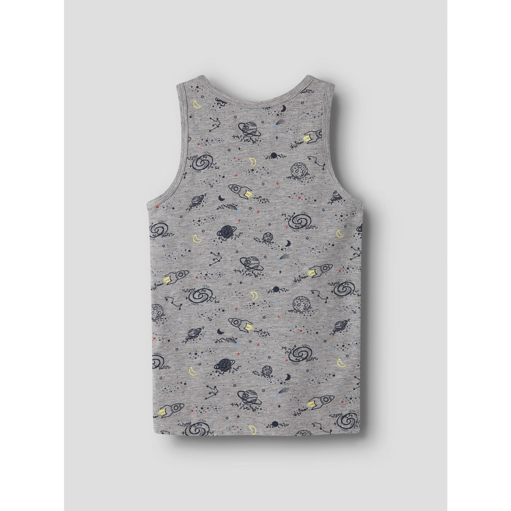Dress your little one in the Name It Grey Melange Nkmtank Top 2P Grey Space Noos, perfect for ensuring comfort and style. These tank tops, made from soft, stretchy jersey, are ideal for children who love to jump, run, and play. The grey melange pattern is not just stylish but practical, blending well with various outfit options. This two-pack set features a fun, repeated print across the fabric, adding a dash of charm to your child's everyday wear. Easy to care for and great for layering or wearing alone, these tank tops are a must-have in your child’s wardrobe for both comfort and functionality.