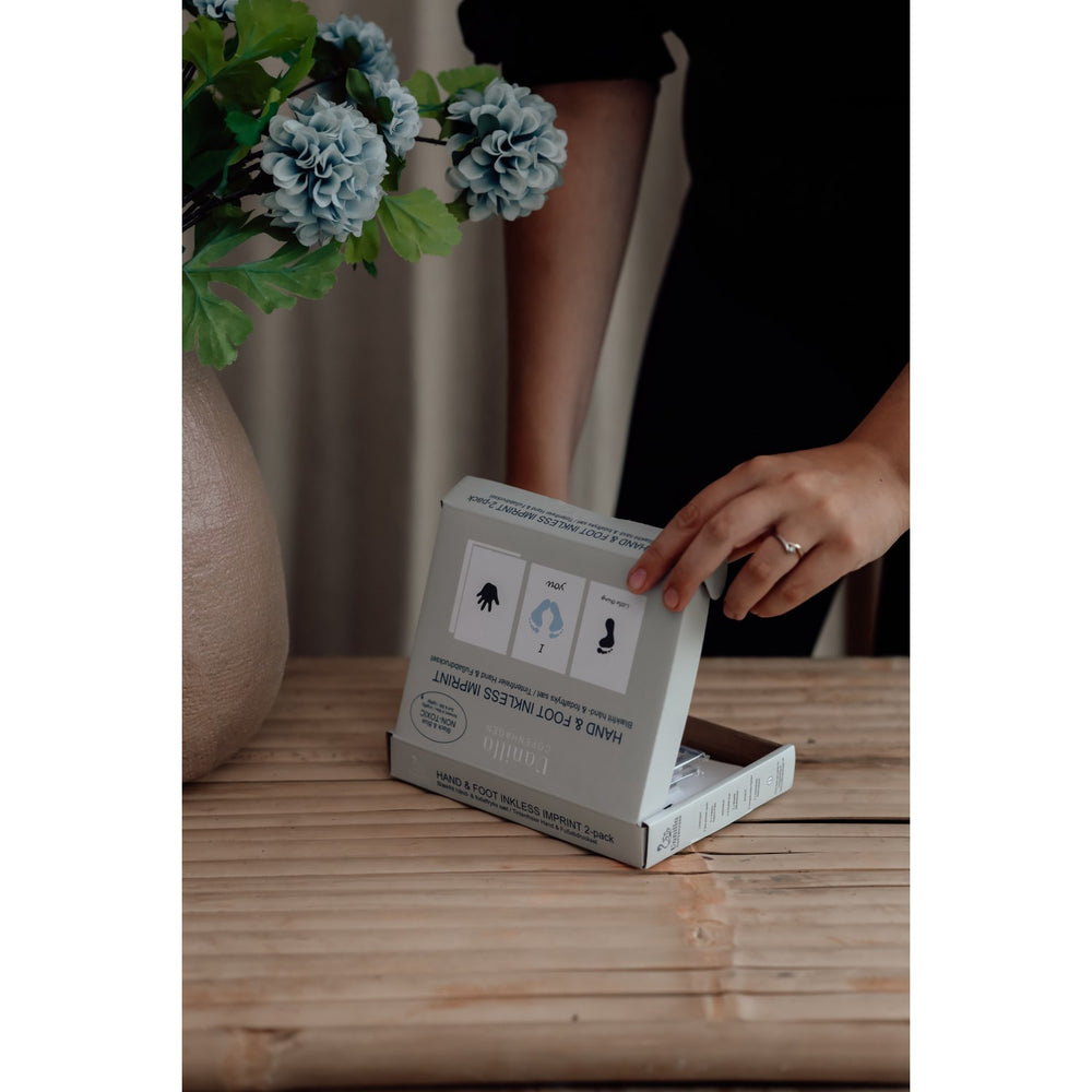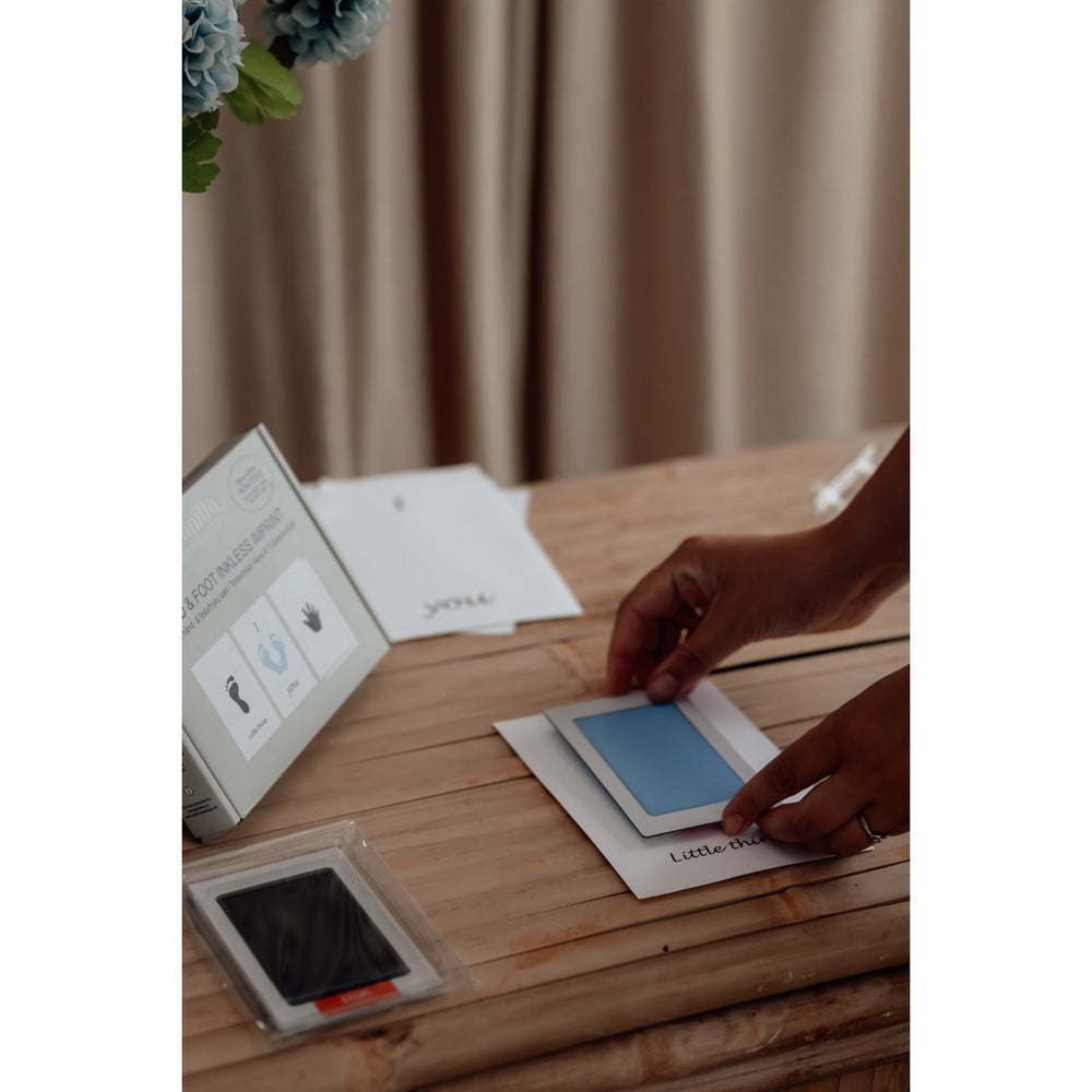 Cherish the little moments with the Vanilla Copenhagen Black/Blue Hand & Foot Inkless Pads Kit. Safely capture your baby’s milestones using soft, air-dry, non-toxic clay that ensures absolute safety and ease of use. Enclosed in a stylish tin box (silver/white, 18 cm diameter), this complete set includes all essentials — a wooden roller, and an acrylic holder, allowing you to preserve precious prints effortlessly. Ideal for children, the kit provides an engaging activity that supports fine motor skills and creativity. Compact and easy to store, the impressions make an excellent keepsake or a heartwarming gift, ensuring those tiny feet and hands leave a lasting impression on your heart. Simply follow the included instructions for a seamless memory-making experience. Materials: Non-toxic Inkless Pads