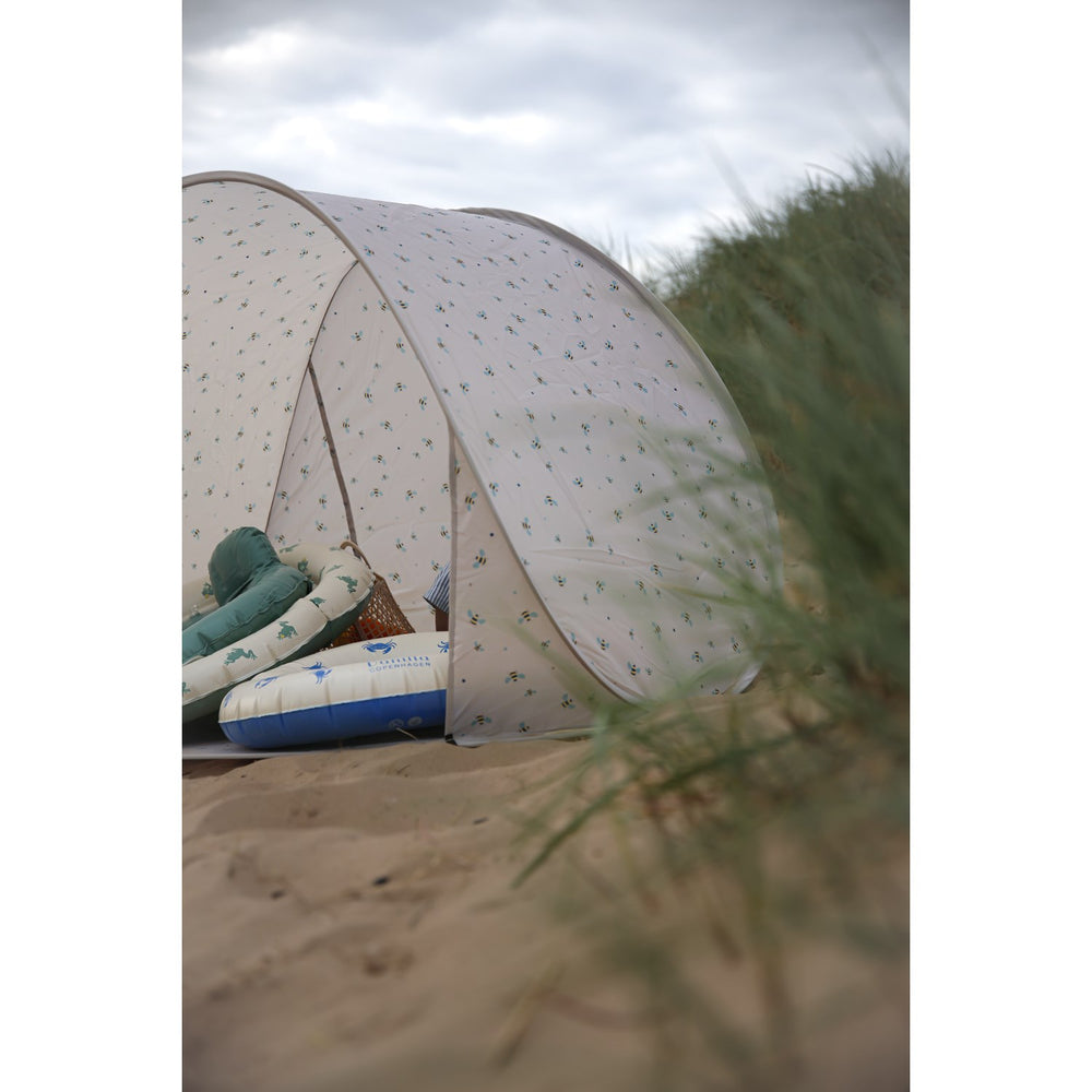 Discover the delightful Vanilla Copenhagen Oyster Grey - HoneyBee Pop-Up Tent Classic, designed with UV50+ protection to keep your little ones safe under the sun. Crafted with high-quality materials, this tent features a charming oyster grey color accented by a playful honeybee pattern. Its instant pop-up design ensures easy setup, making it perfect for any outdoor adventure. Lightweight and portable, it promises comfort and wearability. Ideal for peaceful beach days or fun-filled backyard play, this tent offers a charming and practical shelter for children, combining safety with style.