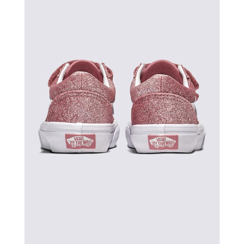 Discover enchantment for tiny toes with the VANS Rose Gold Old Skool V Glitter Sneakers! Crafted from dazzling glitter and sturdy material, these sneakers feature adorable rose gold hues complemented by stylish, easy-to-fasten Velcro straps. Perfect for active kids, they ensure comfort and durability while adding a pop of sparkle to any outfit. Designed for easy care, they promise to keep your little one trendy and comfortable in every step. Ideal for both casual playdates and social gatherings, watch them become your child’s favorite!