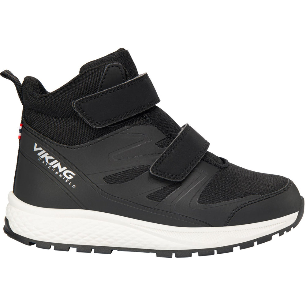 Introducing the Viking Black Equip Mid WP 2V Boots—an adventurous choice perfect for active children. Crafted with a reinforced upper and robust support frame, these boots assure superior stability with their high shaft. The dual velcro fasteners allow for a customized fit, enhancing both comfort and accessibility. Equipped with a lightweight EVA midsole and a full rubber outsole, they deliver unparalleled cushioning and grip, making any surface manageable. Thanks to the innovative Watershield membrane, your child's feet stay dry even in damp conditions. Whether for school adventures or weekend excursions, these boots are built to last. Closure: Velcro Inner material: Textile / Synthetic Insole material: EVA Outsole material: Rubber/EVA Removable sole: Yes Shoe width: Regular Waterproof: Yes Extra: Waterproof PFAS free Watershield membrane