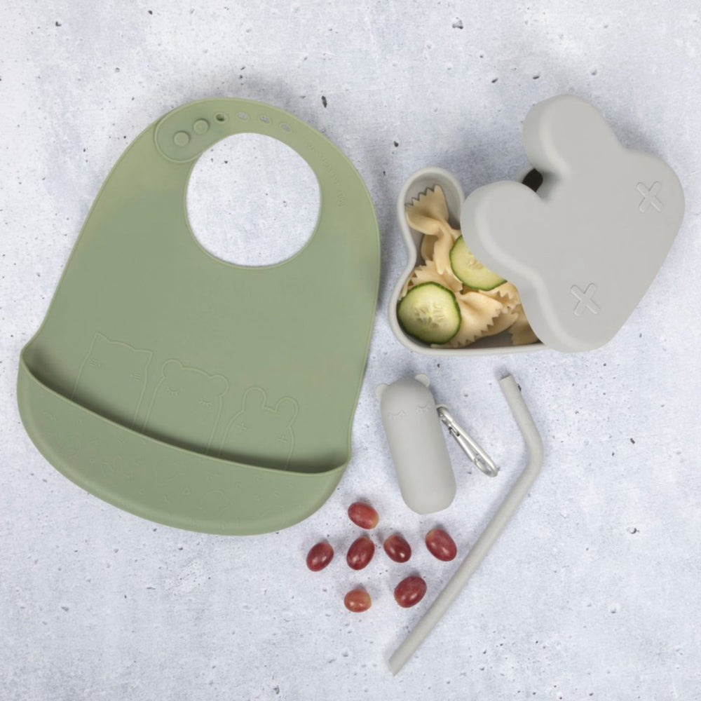These bibs are also incredibly easy to maintain as they are dishwasher safe, allowing quick clean-up. Available in a cheerful yellow and green duo, these bibs not only provide functionality but also add a splash of color to your child's daily routine. Their durable silicone design ensures long-lasting use through numerous meals and cleanings. Perfect for everyday use, these bibs offer a combination of convenience, safety, and style. Materials: 100% silicone Measurements: 29.2 x 23.6 x 2.5 cm Washing instructions: Dishwasher safe.