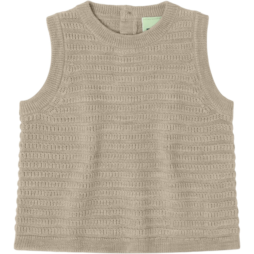 Introducing the FUB Oat Melange Baby Vest, an essential item for your little one's wardrobe that combines eco-conscious fashion with practical design. Crafted from 100% OEKOTEX®, RWS, and BLUESIGN® certified merino wool, this vest ensures that no harmful chemicals touch your baby's skin, while also supporting ethical sheep farming practices. With its charming round neckline, delicate ribbed detailing, and sophisticated pearl shell button closure at the back, it strikes the perfect balance between elegance and ease of wear.