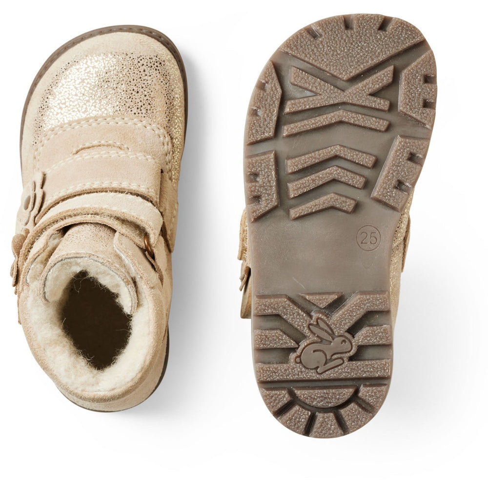 Step into the frosty season with style and warmth wearing the Bundgaard Ivory Glitter Tokker Flower Winter Boots. Perfectly crafted from soft, luxurious suede adorned with a fine suede detail, these boots blend timeless elegance with a touch of sparkle. The classic ivory hue sprinkled with glitter and a playful flower pattern appeals to any child's taste. Designed for slightly older children, the Tokker Flower boasts a wide fit and features like an ultra-cozy wool lining and a waterproof TEX membrane, ensuring little feet stay warm and dry even during the coldest days. The robust TPR outsole provides excellent grip and stability on slippery surfaces, adapting to varying temperatures for safe play. Adding to its convenience, the boots come fitted with Velcro closures for easy on and off — ideal for fostering independence in young ones who are still learning to handle laces. From active school days to adventurous outdoor play, these boots are the go-to for ensuring your child's comfort and freedom during winter adventures.