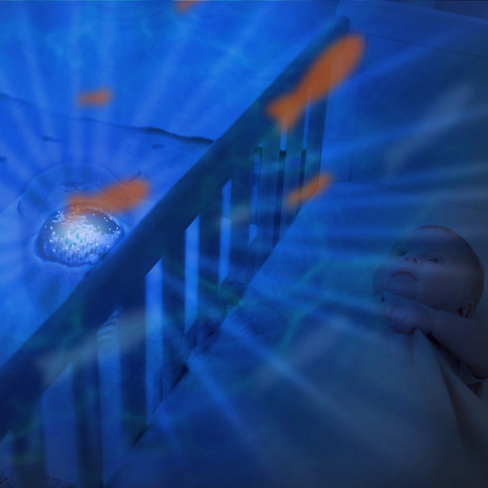 - Moving projections of underwater scenes in multiple colors enhance room aesthetics.