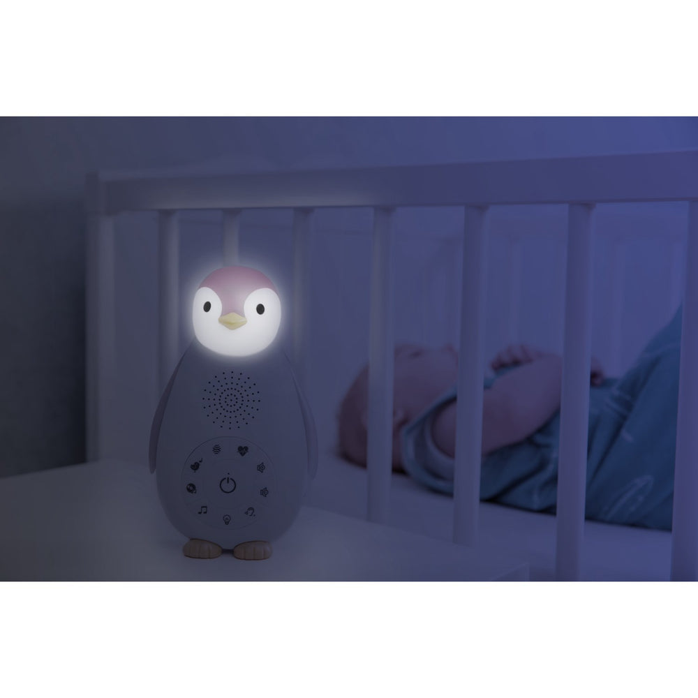 Introducing Zoe the Penguin from Zazu, a charming and versatile addition to your child's sleeping environment. This delightful music box doubles as a wireless speaker and soothing night light. Equipped with pre-programmed melodies including comforting heartbeats, serene white noise, and traditional lullabies, Zoe helps to gently lull your little one to sleep. You can also personalize the experience by playing your child's favorite music or stories through its Bluetooth connectivity.