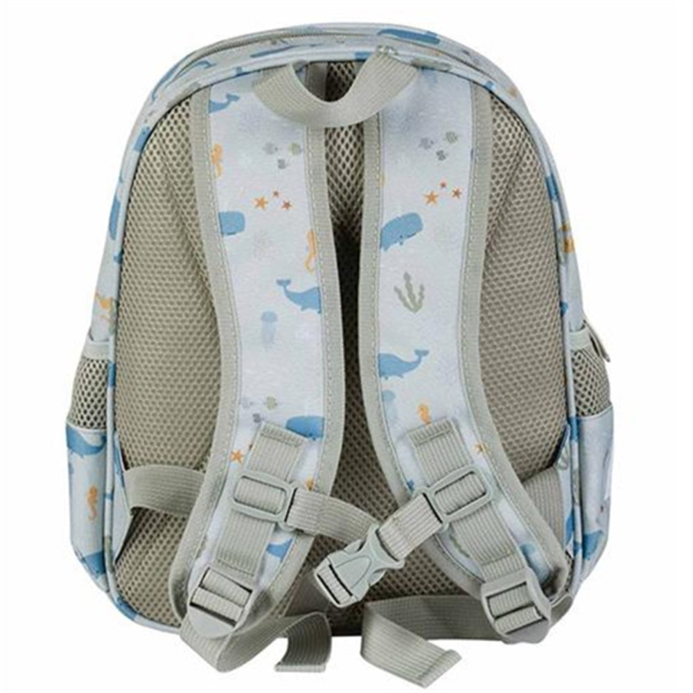 Super smart backpack with insulated front pocket. It is in a really nice color with the finest sea creatures on it. Then the children can get out and experience the world with a super cool backpack. There is plenty of room for extra clothes, toys or whatever else you can think of to put in it. An absolutely perfect and practical backpack, which at the same time looks super nice.