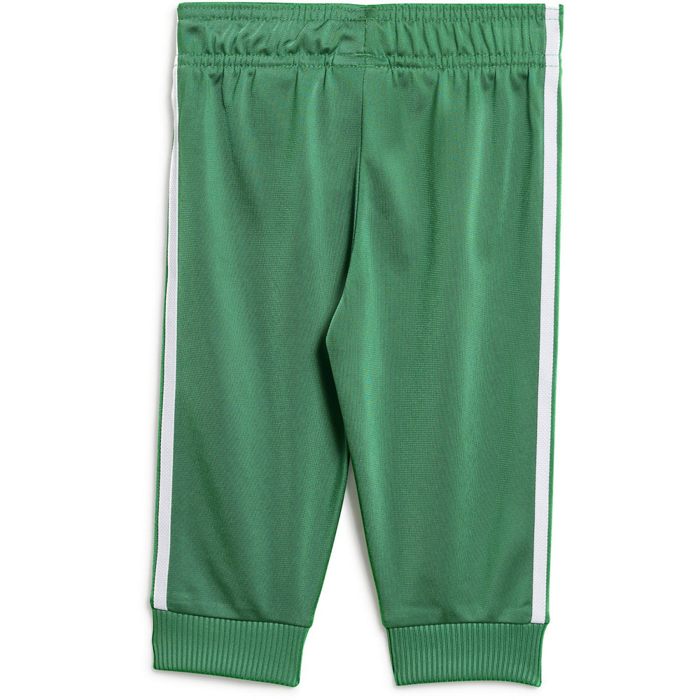 Dress your little ones in the sustainable adicolor SST tracksuit from adidas Originals. Made entirely from recycled polyethylene terephthalate, this unisex outfit features the iconic three-leaf clover logo and signature 3-stripe stripes for a style that's rooted in adidas heritage. Both the top and bottom have a regular fit, designed for optimal comfort and versatility. The black tracksuit stands out with its classic pattern and promises easy maintenance along with durable wear - perfect for children's playful nature.