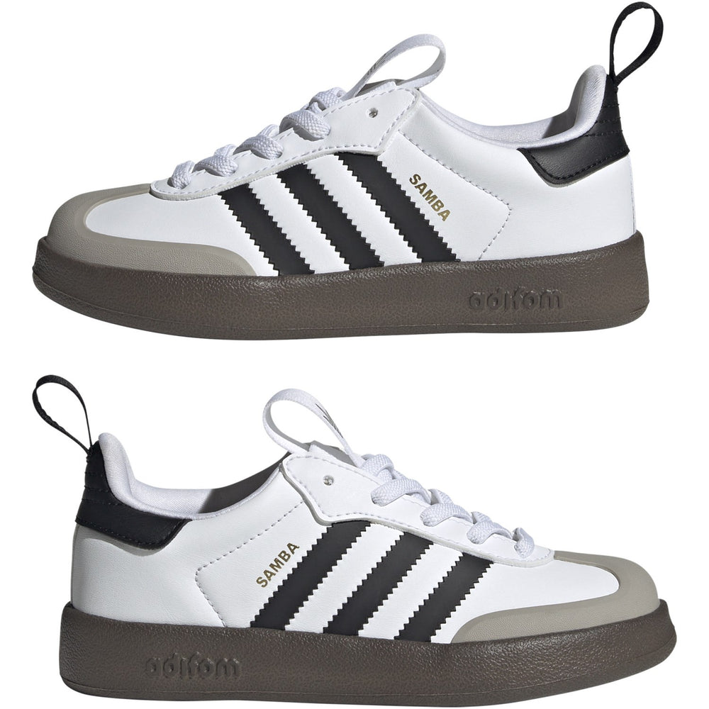 Discover the charm of the adidas Originals Ftwr White/Core Black/Clear Granite Adifom Samba 360 C Sneakers, capturing the spirit of play and style. Designed with active kids in mind, these sneakers are crafted from stretchable synthetic leather, ensuring comfort and a snug fit. The soft EVA adifom outsole boosts durability while providing a cushioned stride. Sporting decorative laces that nod to Samba's classic design, these sneakers mix functionality with iconic aesthetics. Perfect for the daily adventures of little ones, these shoes promise easy wearability and stylish steps.