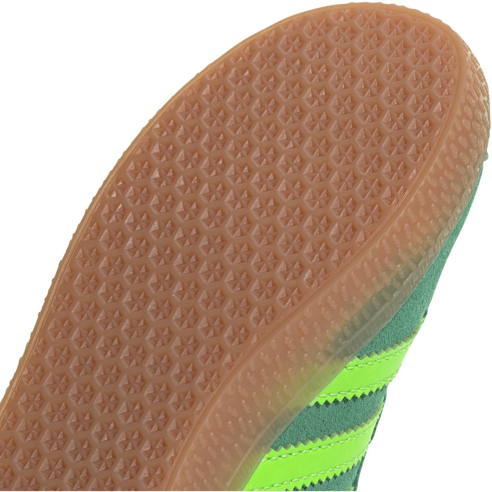 Introduce your child to the timeless charm of adidas Originals with the Gazelle Cf El C Sneakers! Crafted from premium suede in an eye-catching Semi Court Green, Solar Green and Bluebird palette, these sneakers reflect the vintage 1991 design. Featuring stretchy laces for effortless wear, a soft textile lining for comfort and a durable rubber outsole for adventurous days. Whether it's for play or school, Gazelle Sneakers blend iconic style with everyday functionality, making them a perfect choice for your child's active lifestyle.